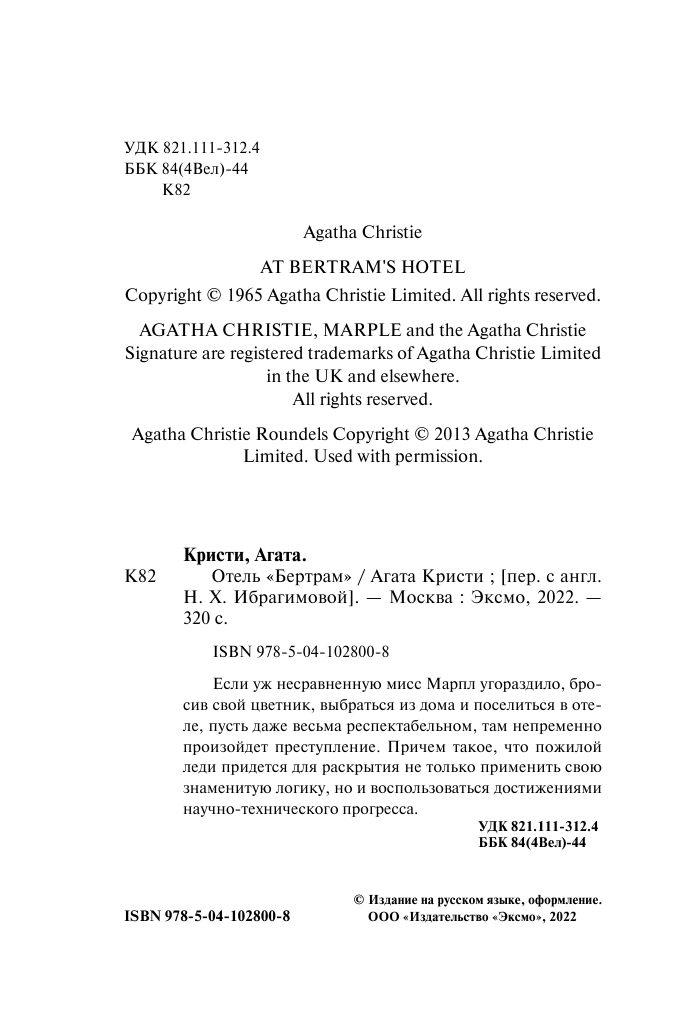Книга: Отель "Бертрам" (Агата Кристи); Эксмо, Редакция 1, 2019