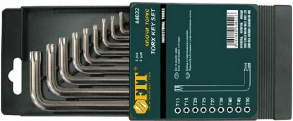 Ключи Fit Профи , TORX, CrV, Т10-Т50, в коробочке, 9 шт. предназначен для работ с крепежом при ремонте автомобилей, велосипедов, бытовой и компьютерной техники. Ключи изготовлены из хром-ванадиевой стали, что обеспечивает их высокую износостойкость. 9 размеров ключей в наборе способствуют выполнению широкого спектра задач.Преимущества Изготовлены из хром-ванадиевой стали и устойчивы к интенсивным нагрузкам Закалка ключей обеспечивает высокую твердость и прочность Увеличенная длина ключей позволяет передавать большее усилие во время работы 9 размеров в наборе способствуют выполнению широкого спектра задач Хромированное покрытие ключей предотвращает коррозию Пластиковый футляр обеспечивает организованное хранение и транспортировку