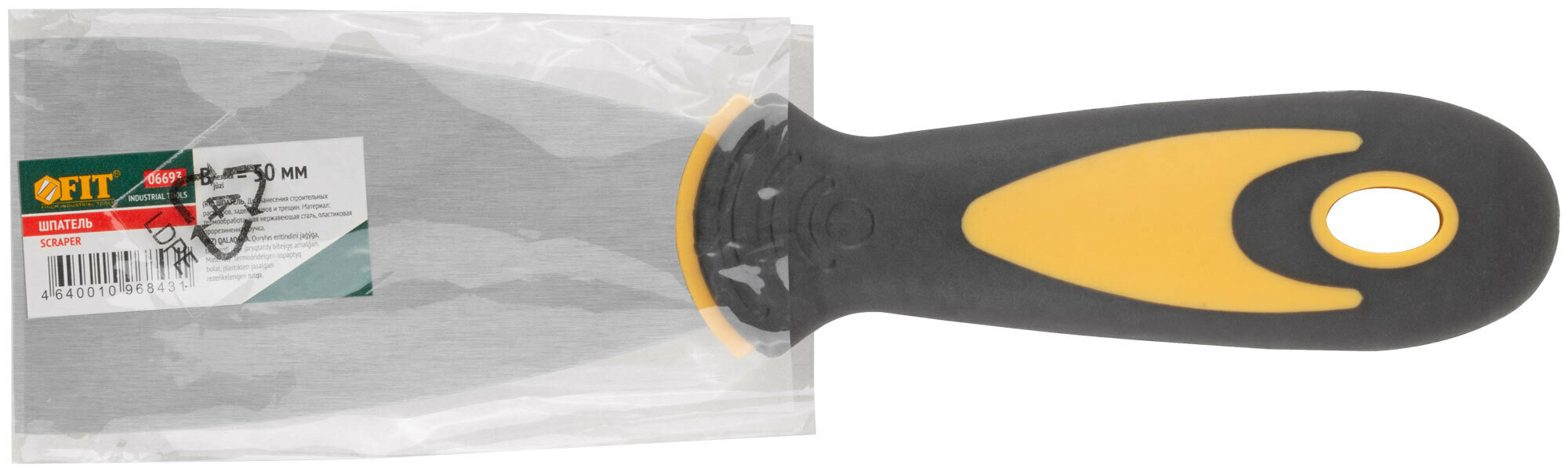 Шпатель FIT (нержавеющая сталь, прорезиненная ручка, 2", 50 мм)