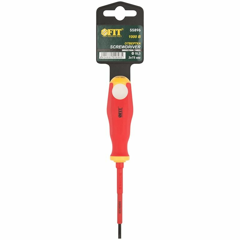 Отвертка изолированная SL 3x75 мм FIT (до 1000 В, Cr-V, магнитный кончик, прорезиненная ручка)