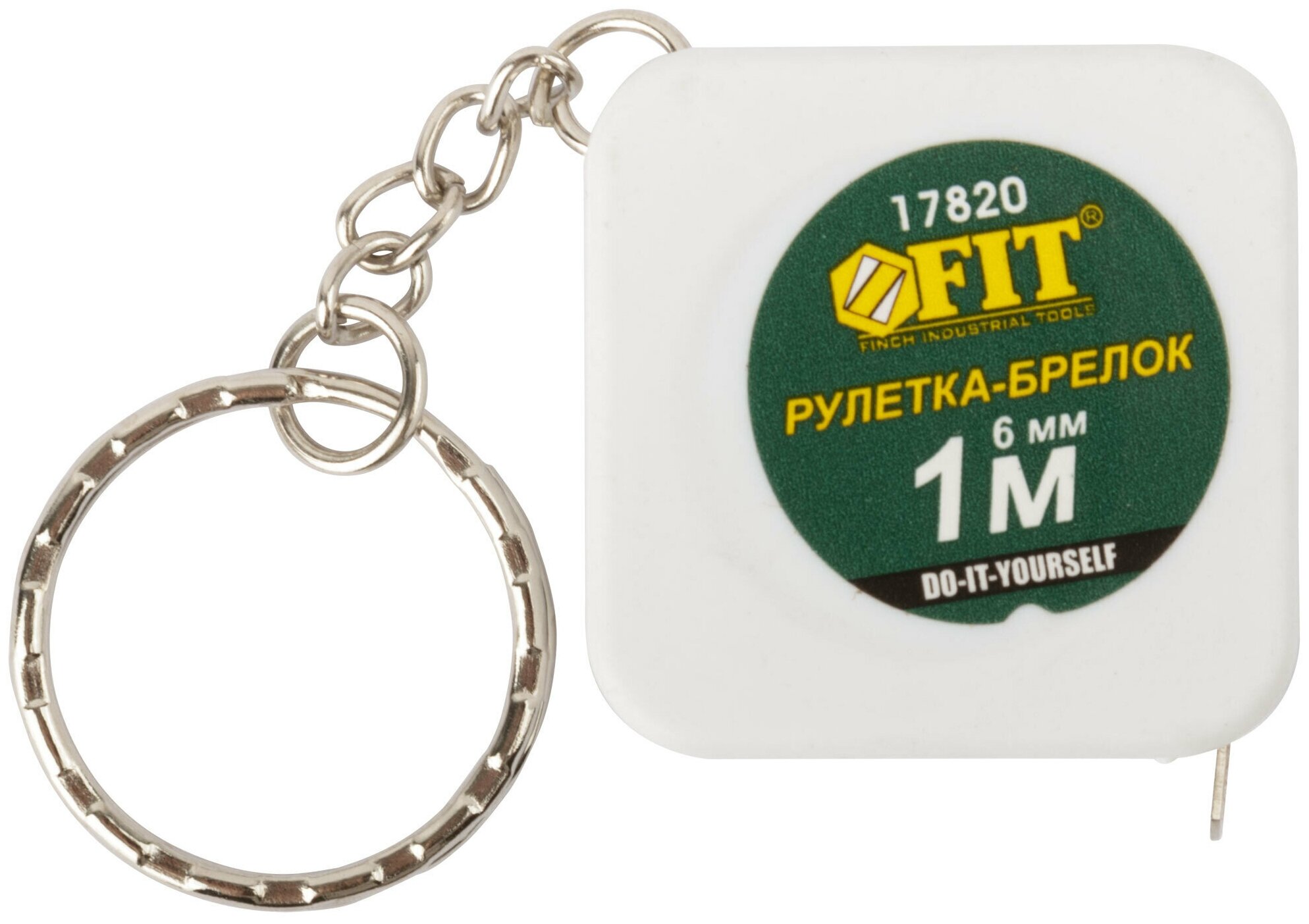 Рулетка-брелок 1м FIT DIY используется для проведения измерений или разметки на небольшом участке. Состоит из пластикового корпуса и стальной ленты. На конце расположен карабин, который необходим для подвешивания рулетки на ключи или ремень. Небольшой размер и компактность делают изделие комфортным и удобным.