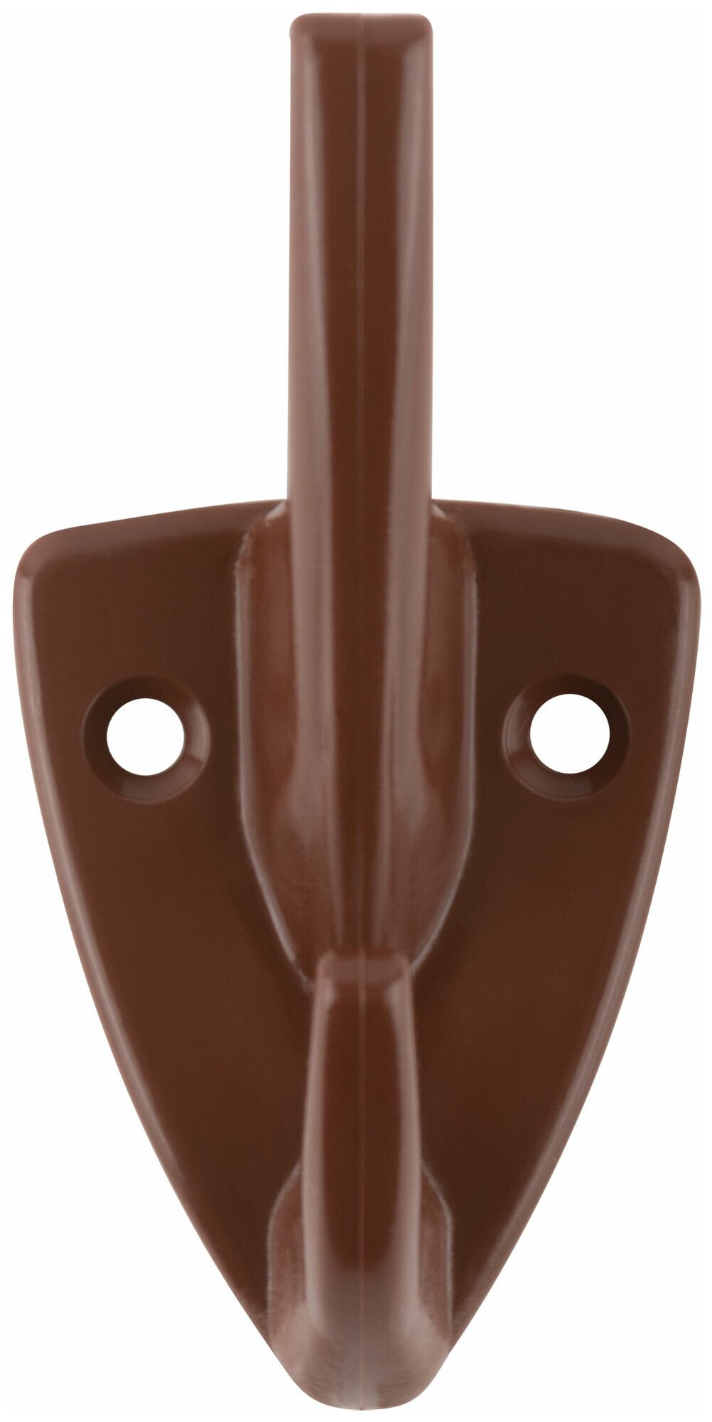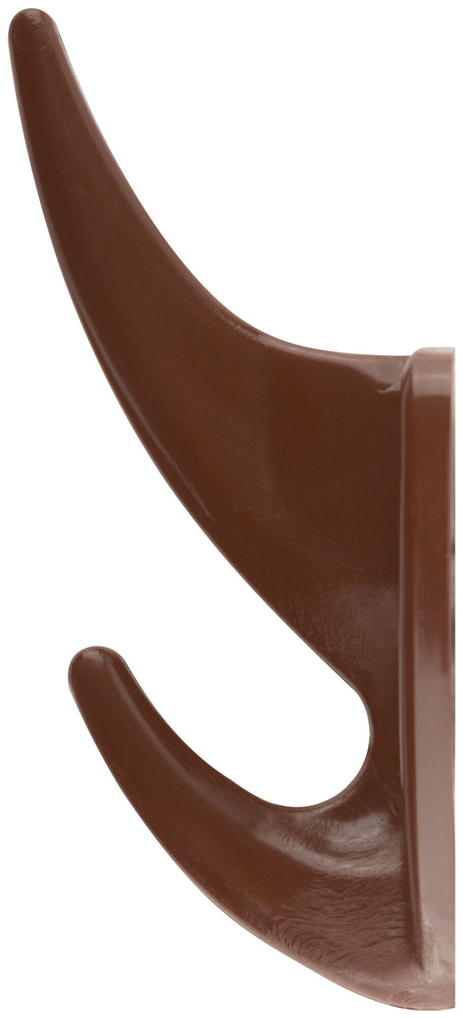 Крючок-вешалка 2-рожковый пластиковый коричневый курс Крючок-вешалка — это незаменимый предмет интерьера в каждом доме, офисе и в принципе в любом помещении. Маленькая и простая в использовании деталь очень функциональна. С ее помощью можно преобразить интерьер и организовать рациональное использование пространства. Материал: пластик.