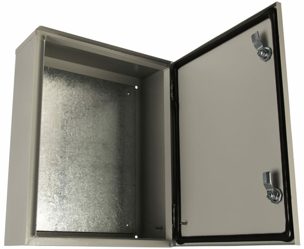 Укомплектованный замком, 2 ключами, оцинкованной съемной монтажной панелью, гермовводами и знаками электробезопасности, щит легок в сборке и практичен в эксплуатации.