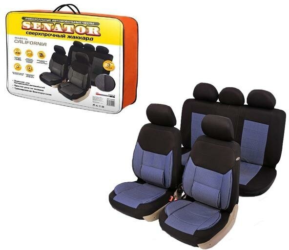 Универсальные ортопедические чехлы из сверхпрочного жаккарда. Применимы для 95% легкового автопарка РФ. Благодаря особому крою типа «В» чехлы идеально облегают сидения автомобиля. Специальный боковой шов позволяет применять авто чехлы в автомобилях с боковыми подушками безопасности (AIR BAG). Наличие расширенной трехуровневой поддержки создает дополнительный комфорт во время поездки. Увеличенную поясничную поддержку и удлиненную боковую поддержку спины и ног по достоинству оценят водители, проводящие за рулем длительное время. Раздельная схема надевания обеспечивает легкую установку авто чехлов. Дополнительное удобство создает наличие предустановленных крючков, утягивающего шнура, фиксирующей липучки на передних спинках, а также предустановленной прорези для установки подголовника. Материал триплирован огнеупорным поролоном 5 мм, за счет чего чехол приобретает дополнительную мягкость и устойчивость к возгоранию. Авточехлы Senator Жаккард California износоустойчивы и легко стирается в стиральной машине.