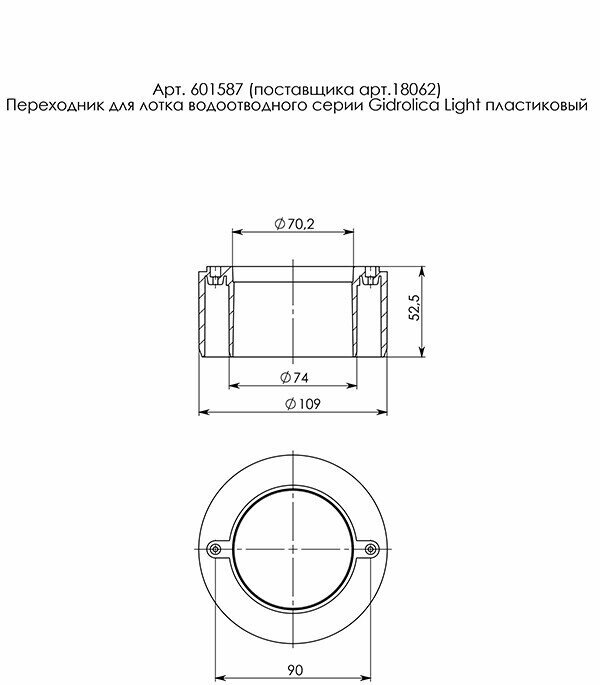 Сервис сравнения цен СкидкаГИД предлагает сравнить цены на товар «Дождеприемники и аксессуары Gidrolica Переходник для водотводного лотка на трубу Ф110 пластиковый»