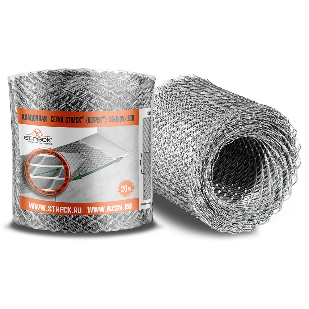Сетка кладочная STRECK15-Z представляет собой изделие из холоднокатаной оцинкованной стали. Материал поставляется в рулонах 180 ммх20 м.