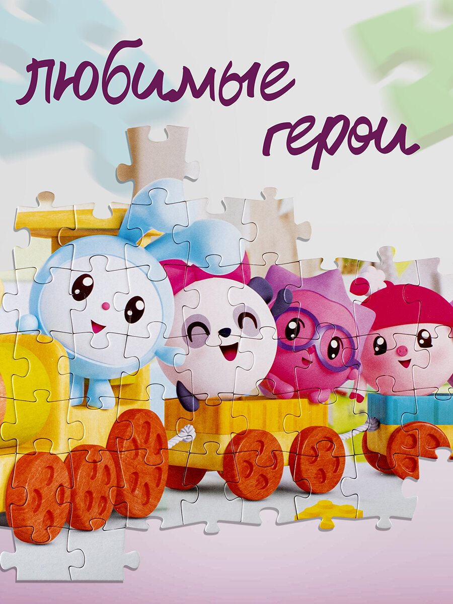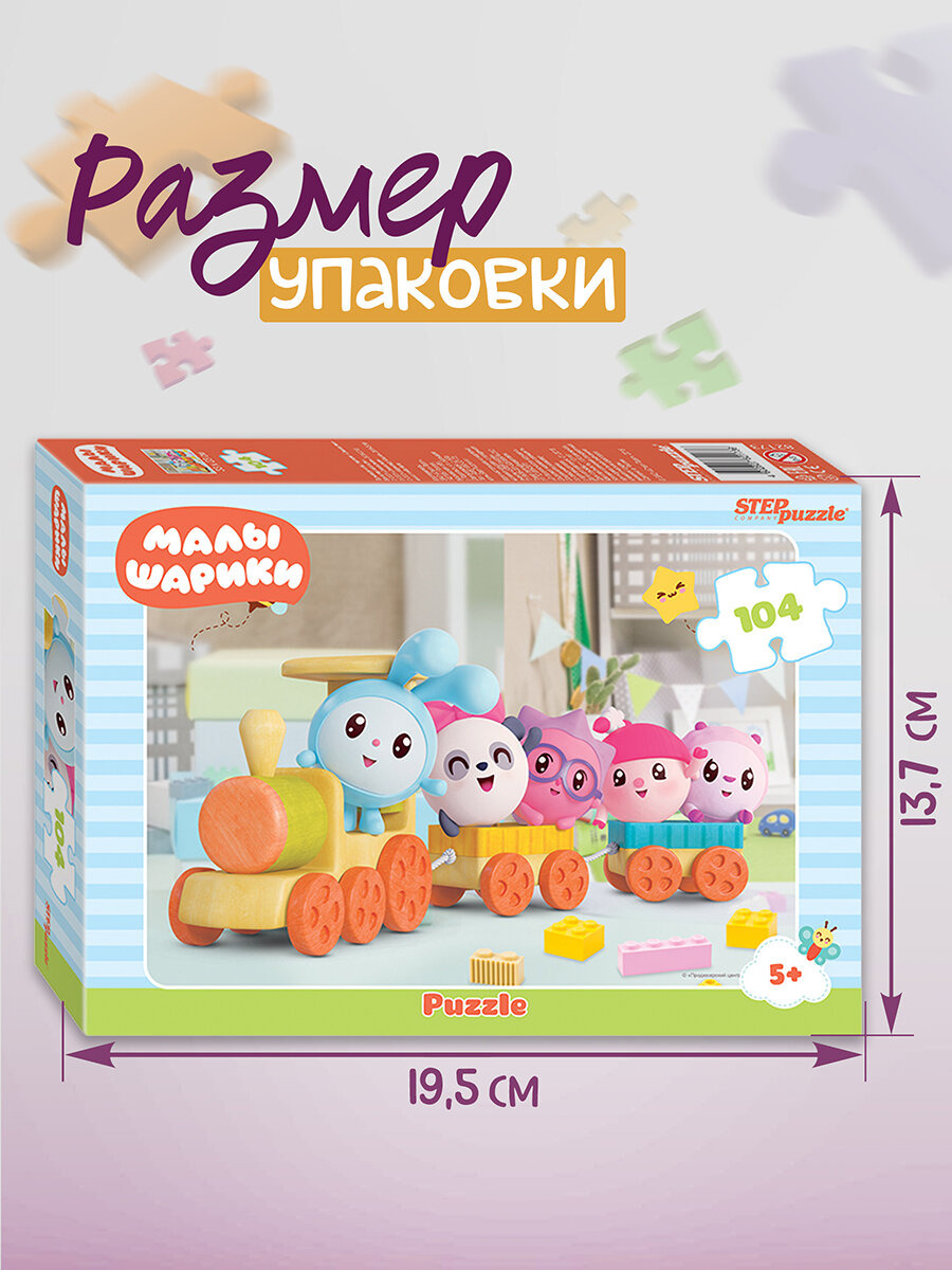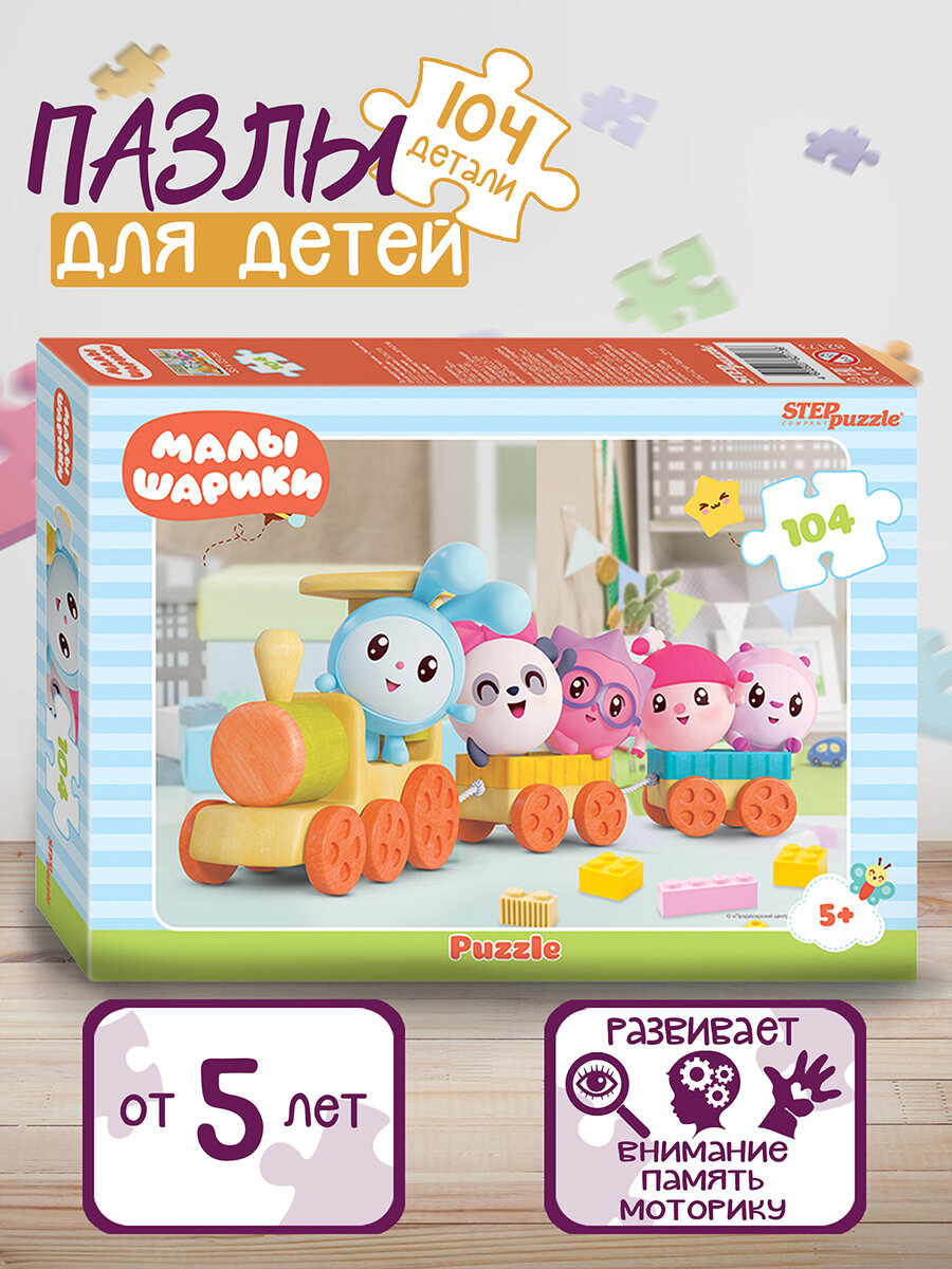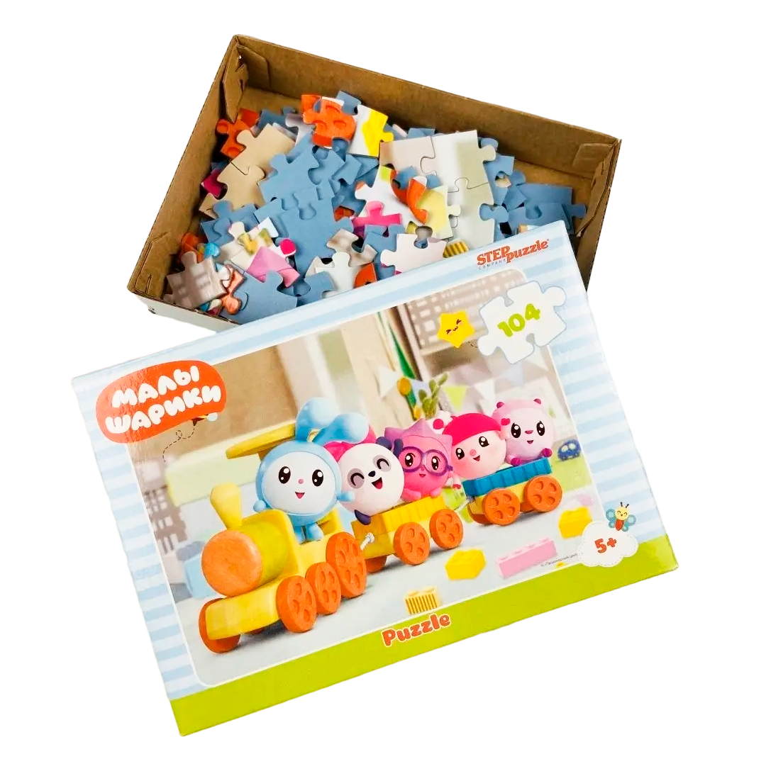 Пазл "Малышарики" состоит из 104 деталей. Он создан по мотивам одноименного мультфильма. В этот раз наши герои отправились кататься на паровозике. Поехали с ними вместе?