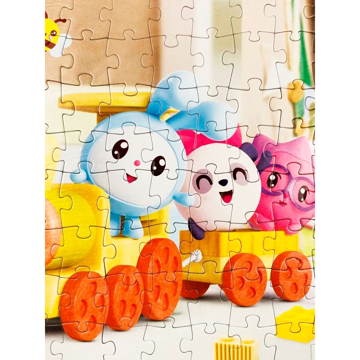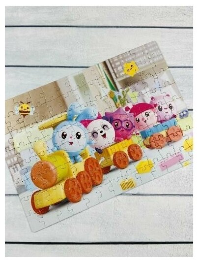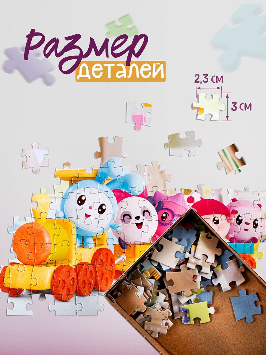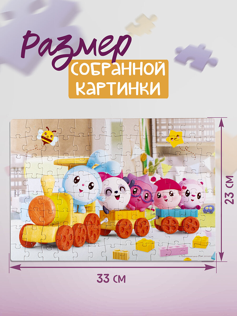 Пазл "Малышарики" состоит из 104 деталей. Он создан по мотивам одноименного мультфильма. В этот раз наши герои отправились кататься на паровозике. Поехали с ними вместе?