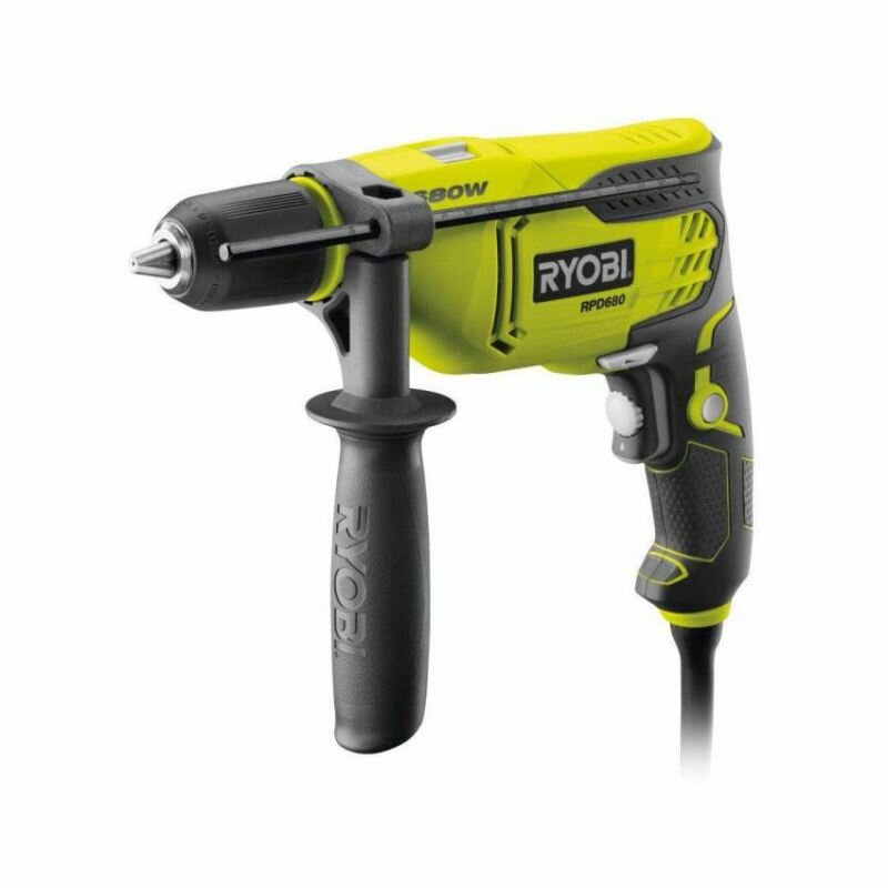 Модель ударной дрели RYOBI применяется для сверления отверстий в различных материалах, таких как металл, дерево и кирпич, причем ее мощности хватает и для работы по бетону. Может работать в двух режимах - сверление отверстий до 34 мм в дереве и до 13 мм в стали, сверление с ударом отверстий до 16 мм в бетоне. Она оборудована быстрозажимным патроном, что позволяет быстро менять сверла и биты без постороннего инструмента.