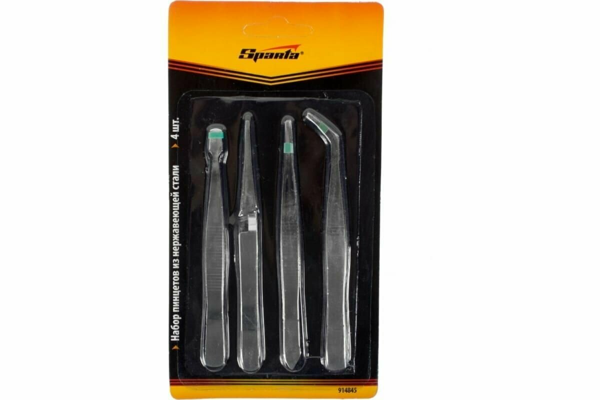 Набор пинцетов из нержавеющей стали SPARTA используется для работы с мелкими предметами. Комплект состоит из 4 пинцетов, которые имеют острые, загнутые и плоские губки. Инструменты изготовлены из нержавеющей стали.