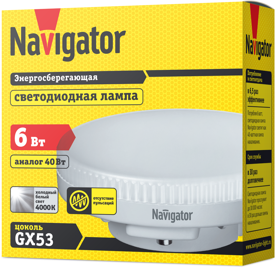 Сервис сравнения цен СкидкаГИД предлагает сравнить цены на товар «Лампа светодиодная Navigator 61 247 nll-gx53-6-230-6.5k»