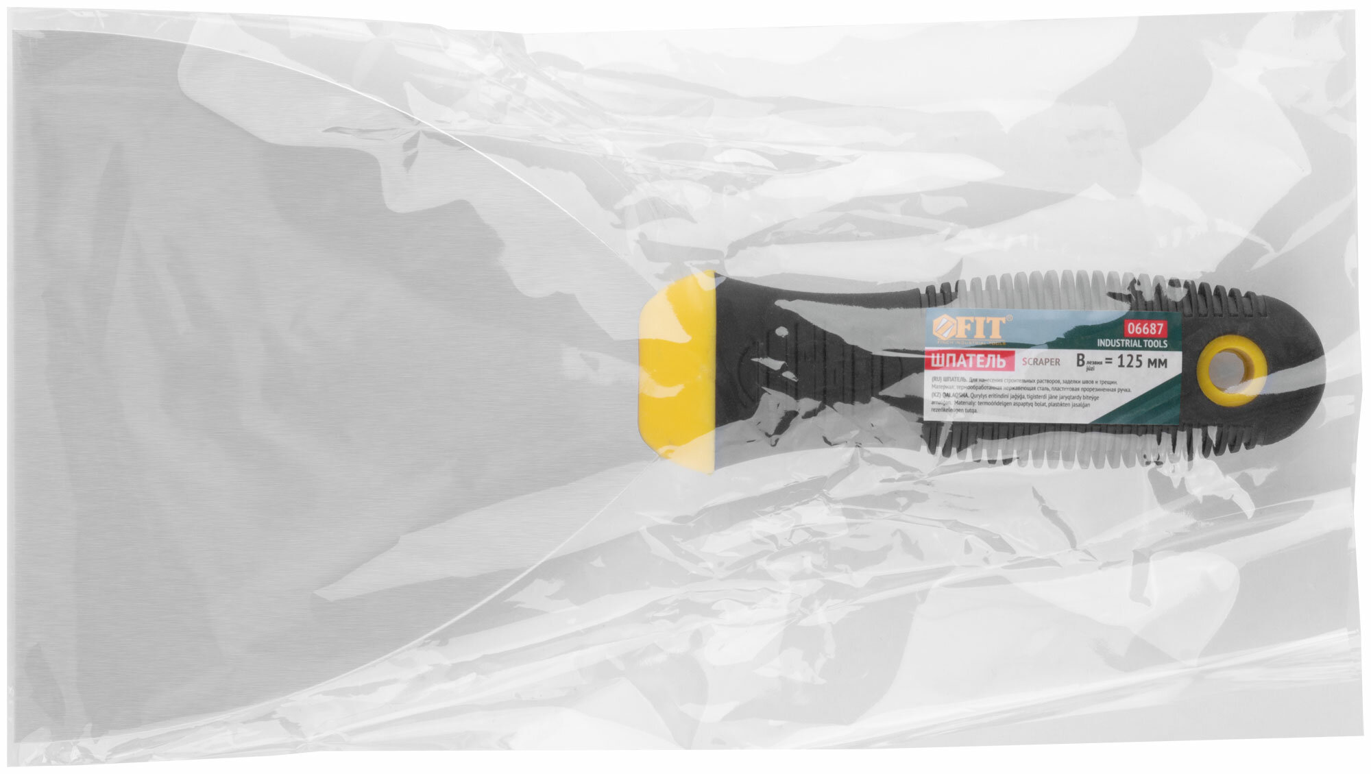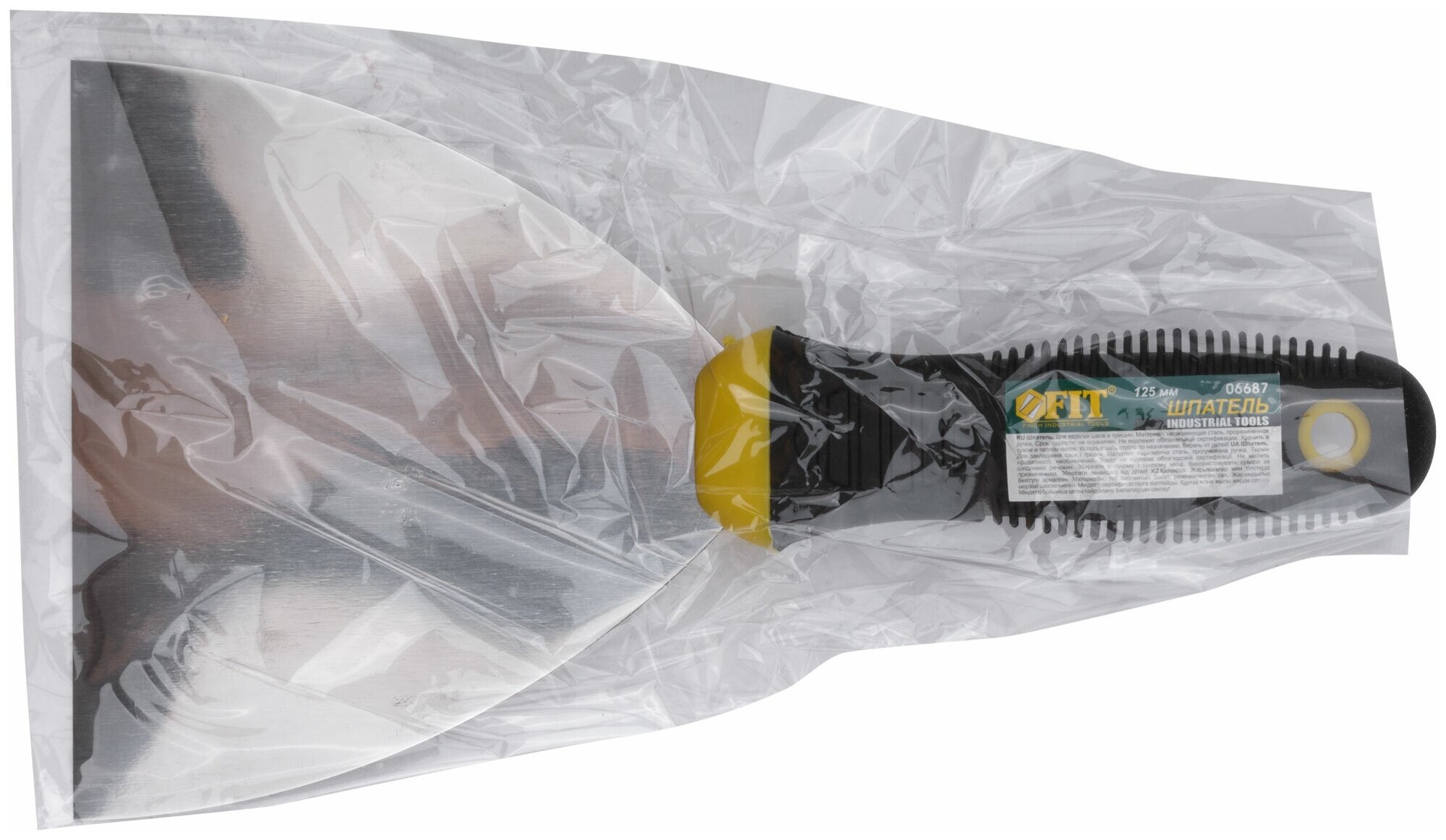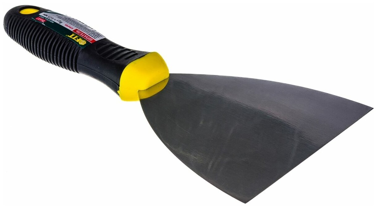 Шпатель FIT (нержавеющая сталь, черно-желтая прорезиненная ручка, 5", 125 мм)