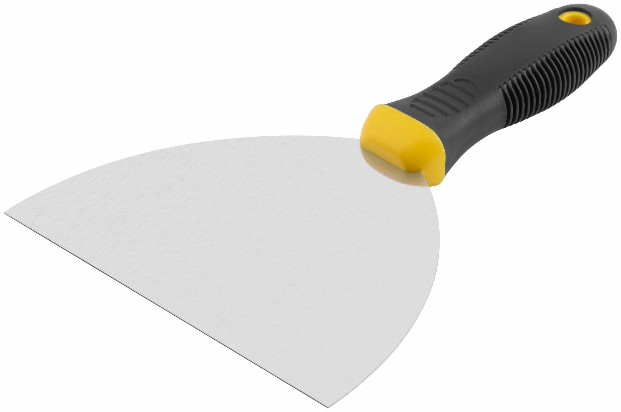 Шпатель FIT (нержавеющая сталь, черно-желтая прорезиненная ручка, 6", 150 мм)