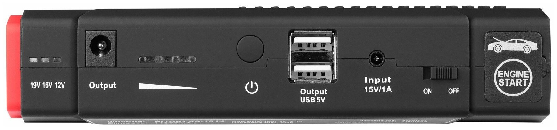 | Прочие особенности и свойства | USB-разъемов - 2 шт,DC разъем для гаджетов,Встроенный фонарь,Емкость встроенного аккумулятора 14 Ач |