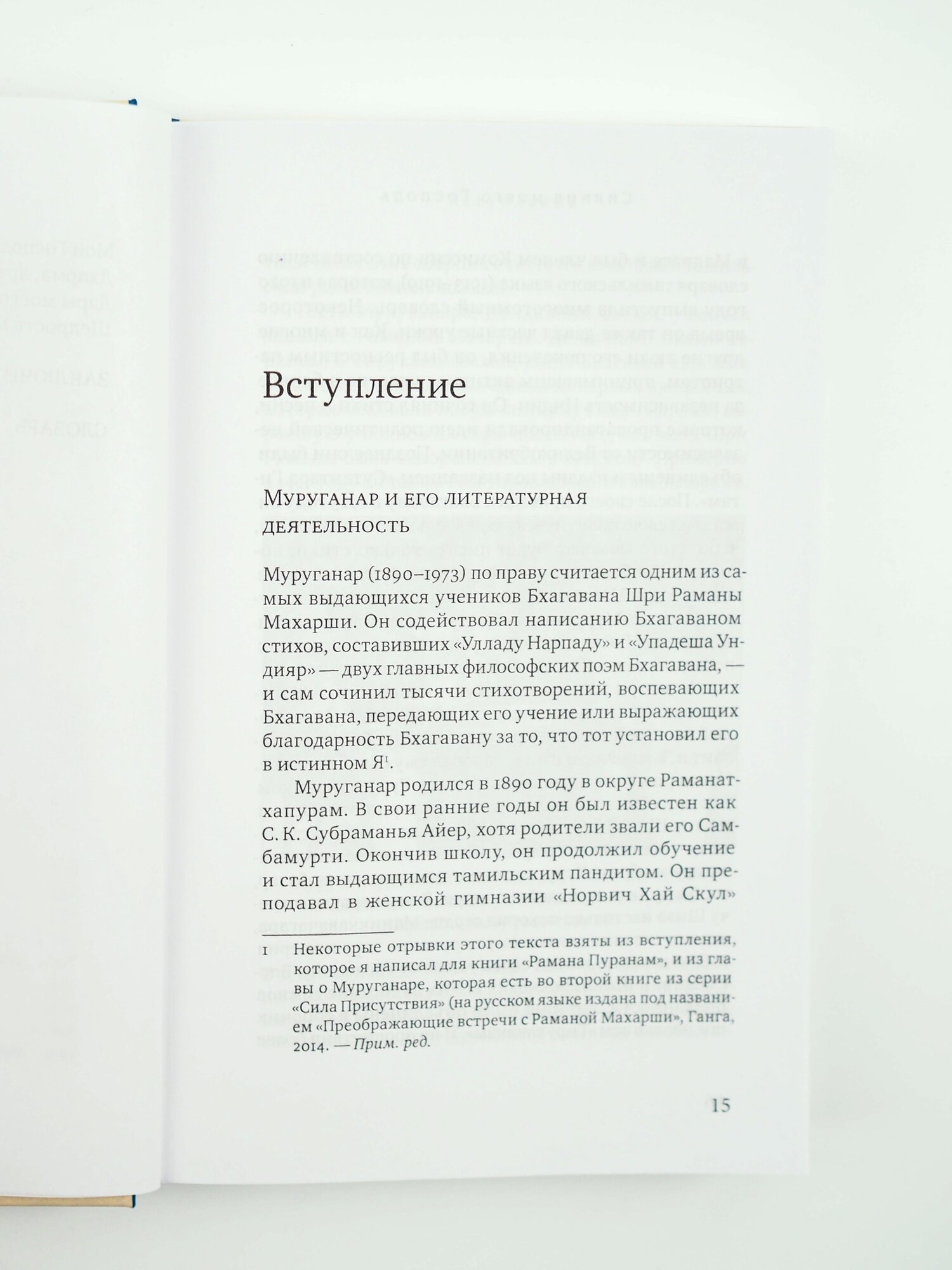 Муруганар (1890-1973) - один из самых выдающихся учеников Раманы Махарши (1879-1950), наиболее почитаемого Учителя адвайты ХХ века. Он содействовал написанию Раманой Махарши двух его главных философских поэм и сам сочинил тысячи стихотворений, восхваляющих своего Учителя, передающих его учение или выражающих благодарность за то, что тот установил его в истинном Я. Эта книга содержит более 1000 таких стихов, взятых из "Шри Рамана джняна бодхам". На русском языке издается впервые.