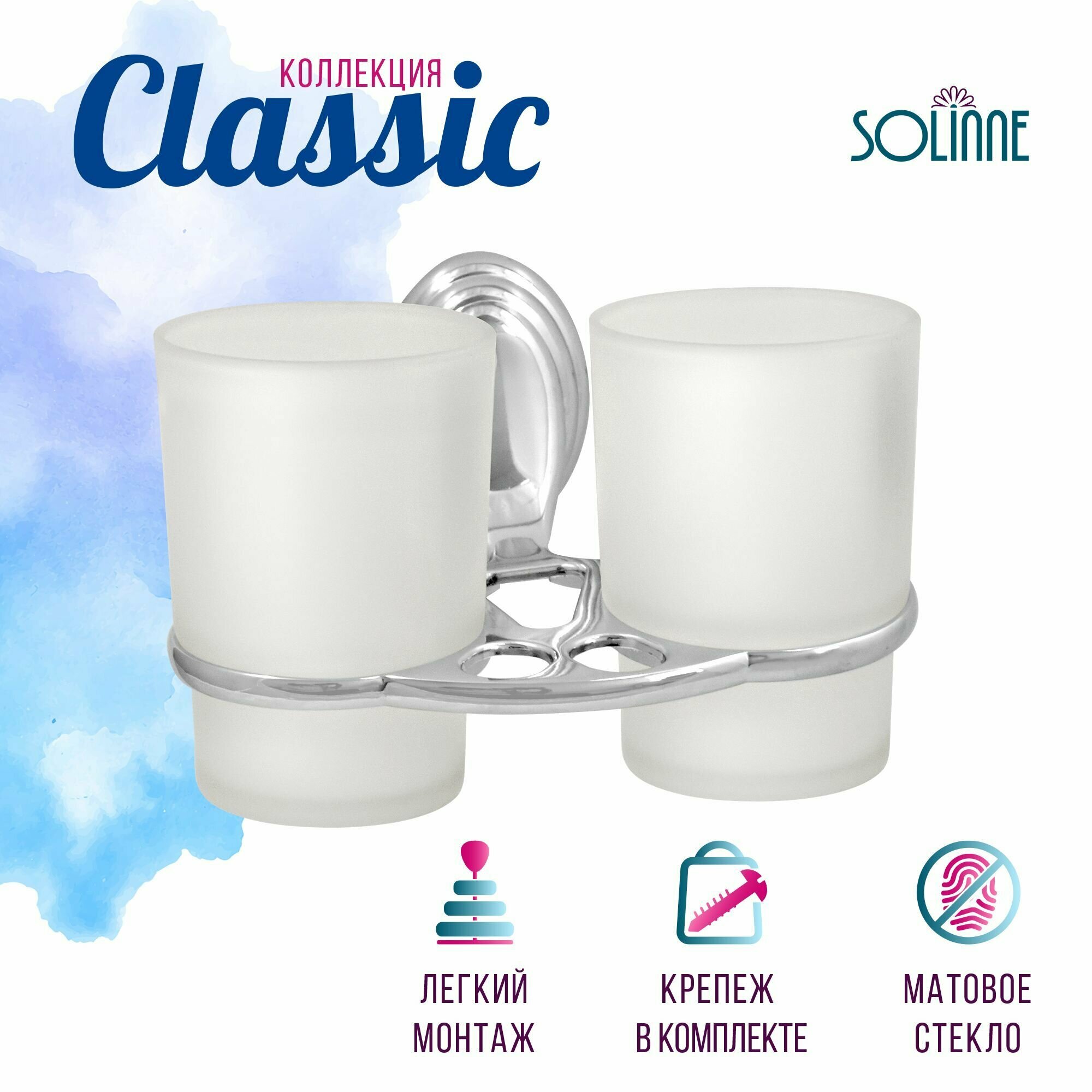 Диспенсеры мыльницы стаканы для ванной Solinne Подстаканник двойной CLASSIC хром-сатин