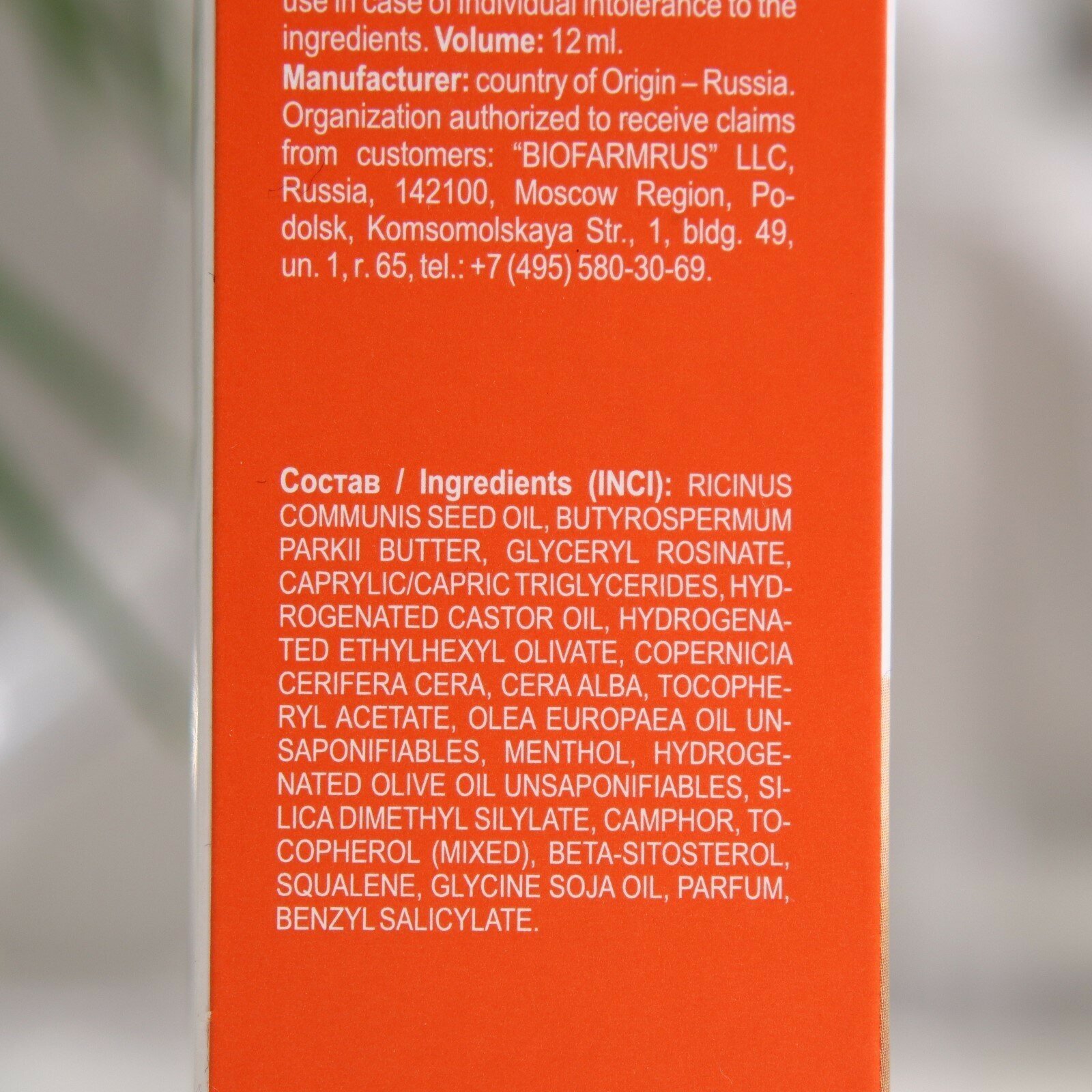 | Состав | масло Ricinus communis, масло butyrospermum parkii, глицерил розинат, триглицерид каприловой кислоты, гидрогенизированное касторовое масло, гидрогенизированный этилгексилоливат, copernicia cerifera cera, cera alba, токоферилацетат, неомыляемое оливковое масло olea europaea, ментол, неомыляемое гидрогенизированное оливковое масло, диметилсилилат кремния, камфара, токоферол (смешанный), бетазитостерин, сквален, глицериллиноленат, отдушка, бензилсалицилатаденозин |