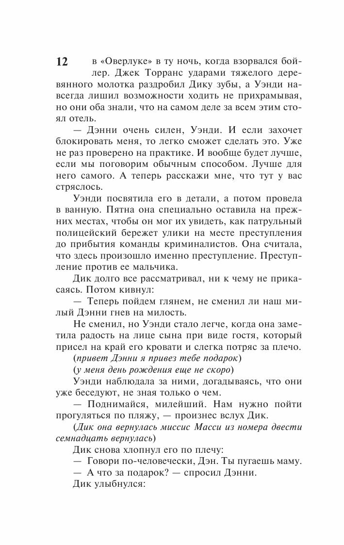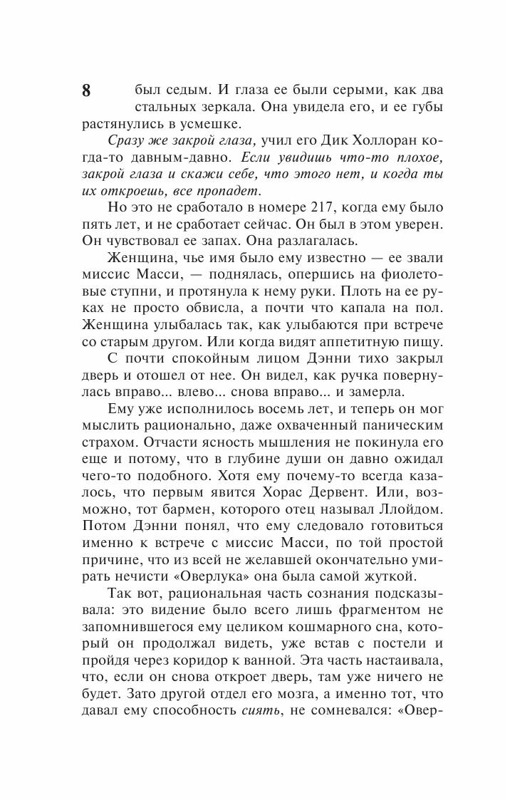 В отличии от «Сияния» этот роман не страшный и не жуткий. Сюжет больше строится на мистике.
