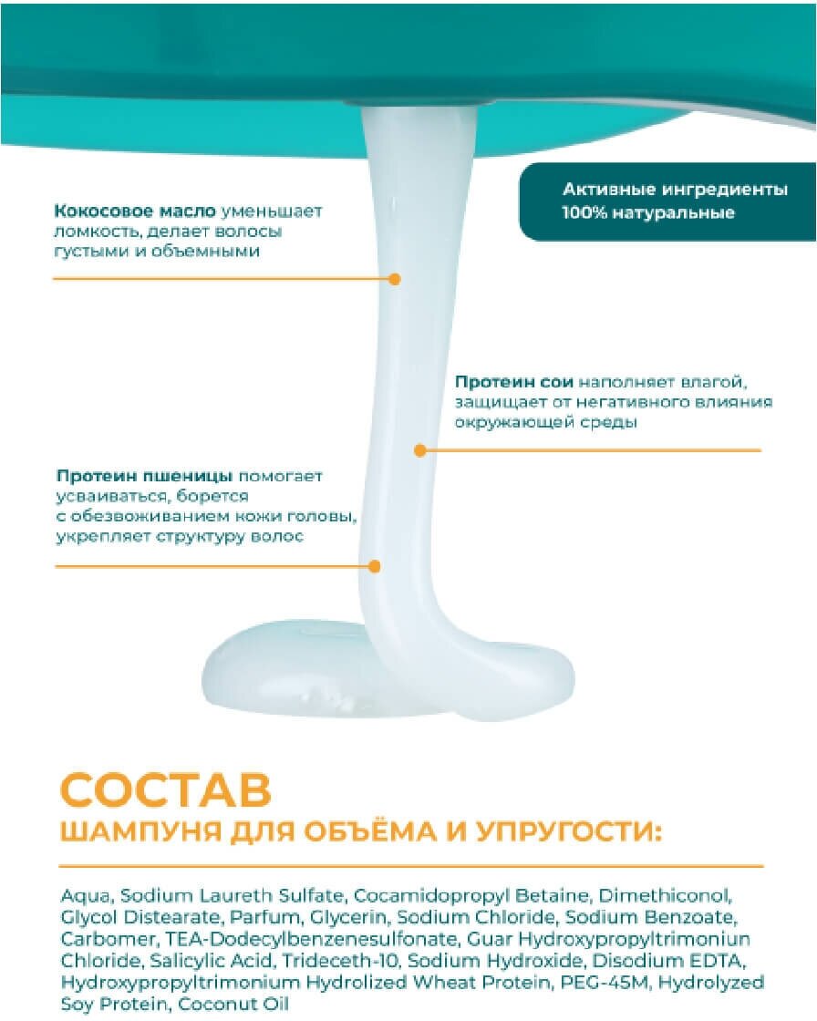 | Состав | Aqua, Sodium Laureth Sulfate, Cocamidopropyl Betaine, Dimethiconol, Glycol Distearate, Parfum, Glycerin, Sodium Chloride, Sodium Benzoate, Carbomer, TEA-Dodecylbenzenesulfonate, Guar Hydroxypropyltrimoniun Chloride, Salicylic Acid, Trideceth-10, Sodium Hydroxide, Disodium EDTA, Hydroxypropyltrimonium Hydrolized Wheat Protein, PEG-45M, Hydrolyzed Soy Protein, Cocos Nucifera (Coconut) Oil |