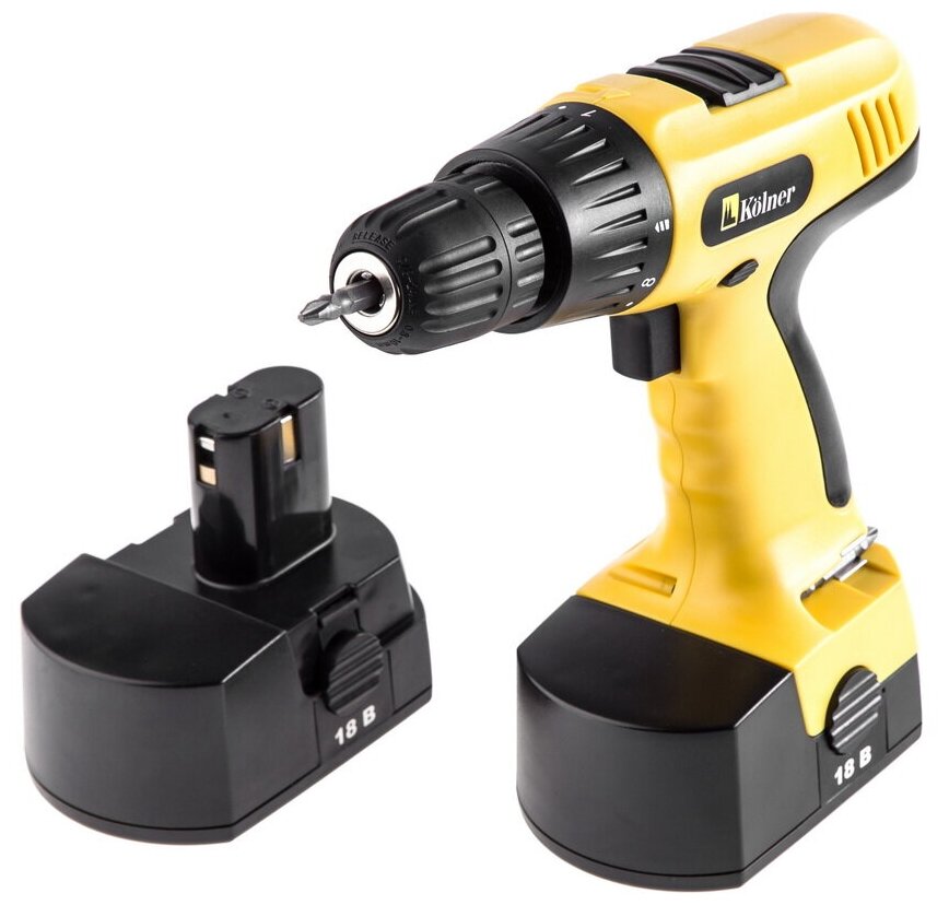 Дрель-шуруповёрт Kolner KCD оснащена электродвигателем, обеспечивающим скорость вращения до 1150 оборотов в минуту. Она питается от 18-вольтового никель-кадмиевого аккумулятора ёмкостью 1,3 Ач. Шуруповерт обладает регулируемым крутящим моментом до 17 Нм (16+1 ступеней). Легкий, компактный и прочный корпус с удобной прорезиненной рукояткой отлично подходит для использования в труднодоступных рабочих зонах. Вращение патрона можно мгновенного остановить, нажатием кнопки включение.