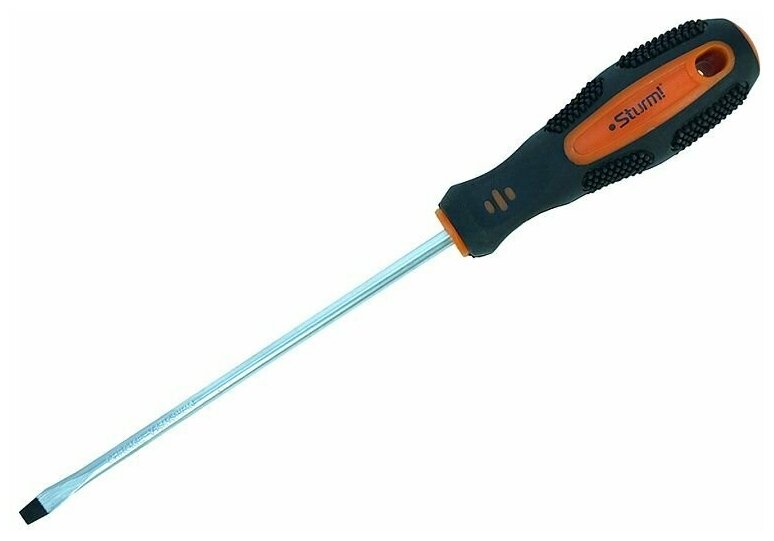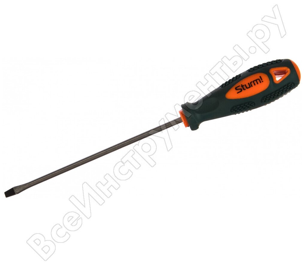 Sturm! Эргономичная рукоятка с мягким резиновым покрытием, препятствующим проскальзыванию отвертки в руке. Рабочая часть отвертки выполнена из высоколегированной хромованадиевой инструментальной стали и имеет высокую твердость и прочность, что определяет длительный срок службы инструмента.