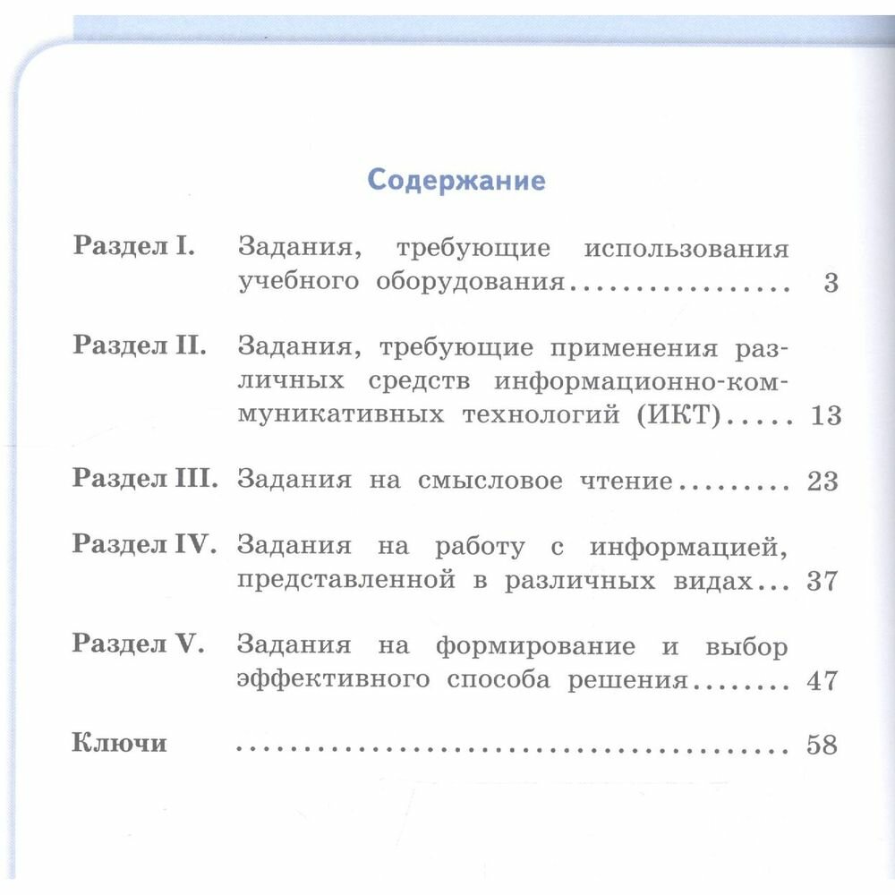 Вторая часть содержит систему заданий на формирование и развитие универсальных учебных действий. Работая с пособием, обучающиеся научатся ставить учебную задачу и находить способы её решения, планировать свою деятельность, контролировать ход и оценивать результат своей деятельности, научатся работать с информацией, овладеют коммуникативными умениями и умением сотрудничать. Включает задания разных типов: с использованием учебного оборудования; с применением различных средств информационно-коммуникативных технологий (ИКТ); на смысловое чтение; на работу с информацией, представленной в различных видах; на формирование и выбор эффективного способа решения.