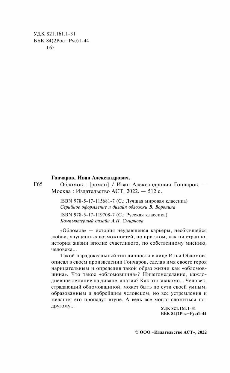 Книга: Обломов (Гончаров Иван Александрович); ИЗДАТЕЛЬСТВО "АСТ", 2019