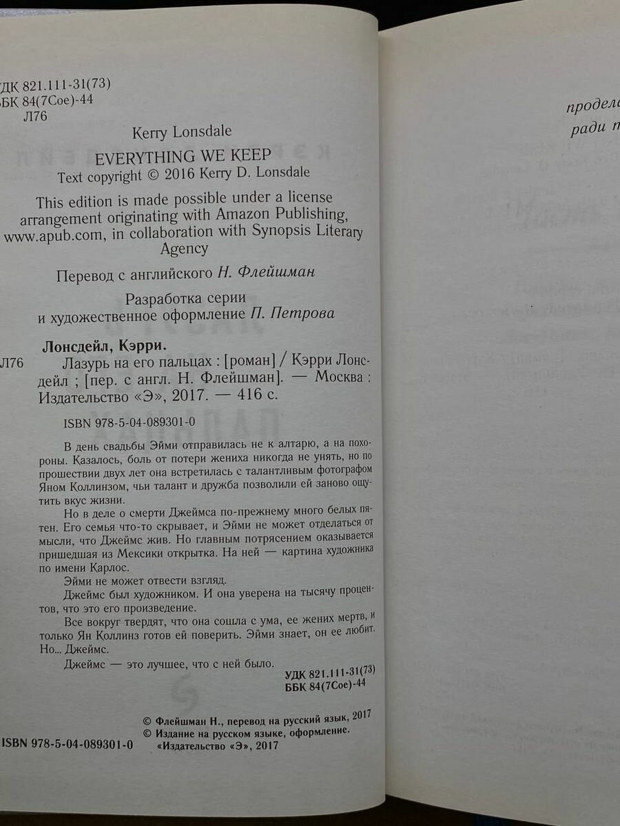 Книга: Лазурь на его пальцах (Кэрри Лонсдейл); Эксмо, Редакция 1, 2019
