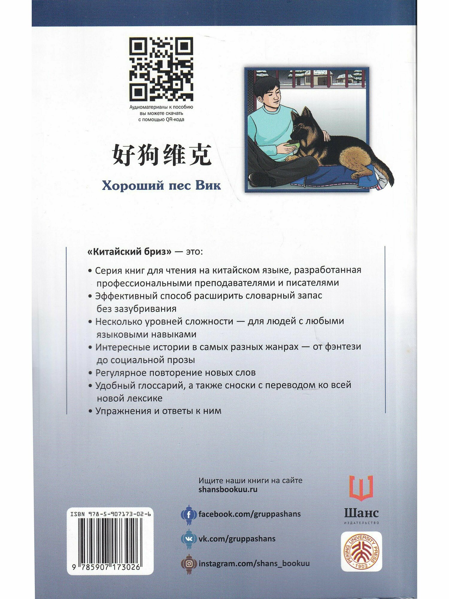 Книга для чтения "Хороший пес Вик" из серии "Китайский бриз" предназначена для изучающих китайский язык. Она поможет в освоении новой лексики и расширении словарного запаса. Издание относится к уровню 4: чтобы освоить новую лексику из пособия, необходимо знать 1100 базовых слов.