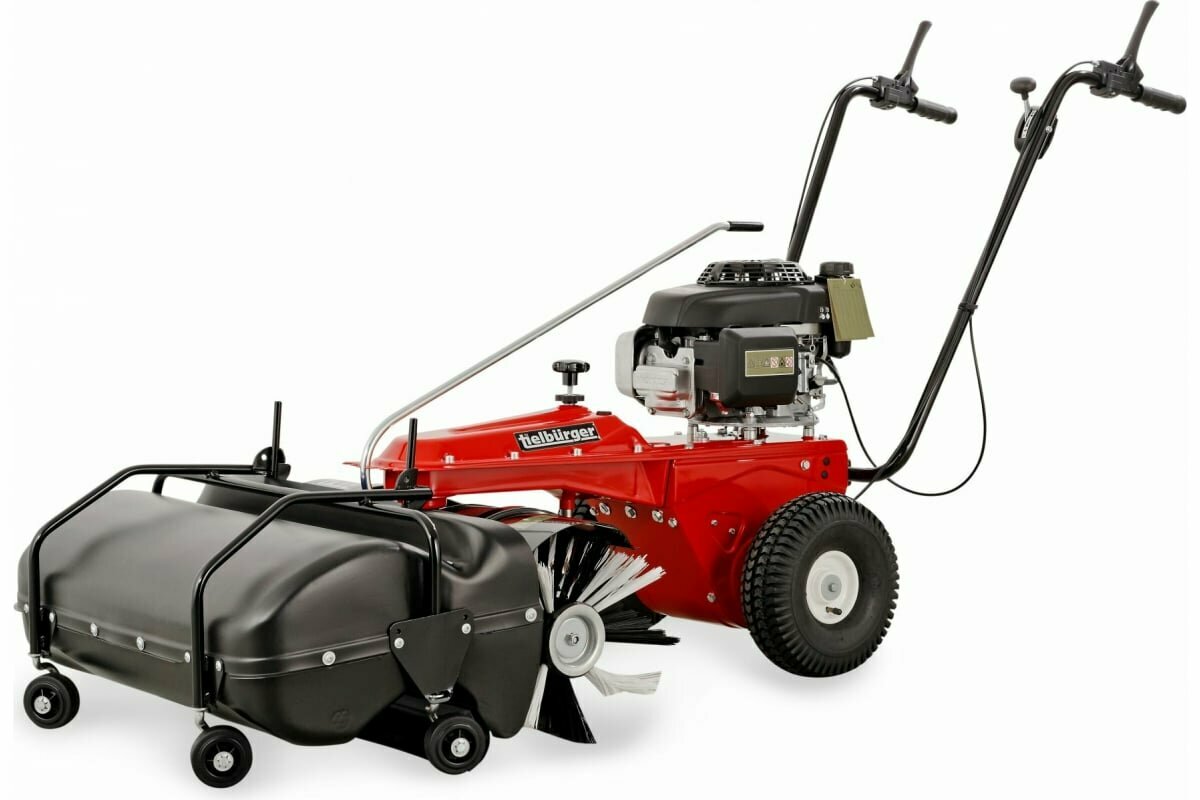 Машина подметально-уборочная Tielbuerger TK17 с двигателем Briggs & Stratton - незаменимый помощник для поддержания идеальной чистоты во дворах, скверах и различных прилегающих территориях в любое время года. Летом подметальная машина ведет успешную борьбу с пылью и мусором, осенью с листвой и грязью, а зимой со снежными сугробами. Использование щетки с ворсом различной длины и видов гарантирует идеальное качество уборки. Зимой лучше использовать специальную щетку для снега, а для очистки мха подойдет щетка для сильно въевшейся грязи. Для защиты от коррозии корпуса и деталей используется трехслойное лакокрасочное покрытие. Детали, которые подвержены воздействию агрессивной среды оцинкованы или изготовлены из нержавеющей стали.Центральный привод подметальной щётки позволяет без дополнительных боковых щеток очистить поверхность вдоль стен и вымести грязь из углов. Высота щетки над поверхностью регулируется с помощью специального маховика, что позволяет уменьшать или увеличивать зазор между щеткой и поверхностью для различных условий работы. Угол поворота щетки меняется в 5 направлениях. Высота рукояток регулируется (6 ступеней), что делает работу еще более комфортной.Скорость вращения щёток и скорость самого агрегата регулируются с помощью различных рычагов управления, что значительно повышает эффективность использования и производительность подметальной машины