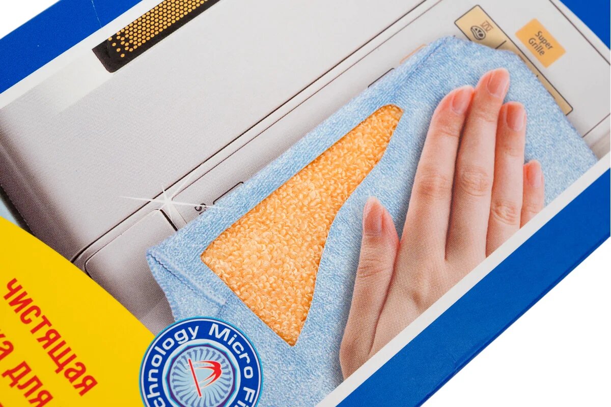 Материал новейшего поколения - MICROFIBERS TECHNOLOGY. Чистит как моющими средствами, так и без них. Не оставляет разводов, ворсинок и царапин. Снимает статическое электричество. В 6 раз лучше впитывает влагу по сравнению с хлопчатобумажными салфетками и полотенцами.
