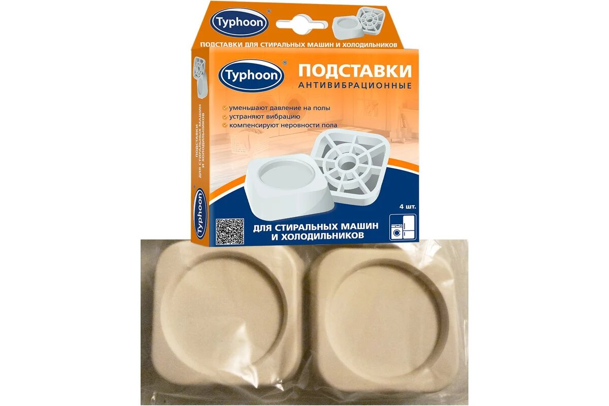 Подставки для ножек Тайфун ОВП12 предназначены для уменьшения вибрации и шума, возникающего при работе таких электробытовых приборов как холодильники, стиральные и посудомоечные машины. Коническая форма подставки перераспределяет давление ножек бытовых приборов и существенно уменьшает нагрузку на пол.