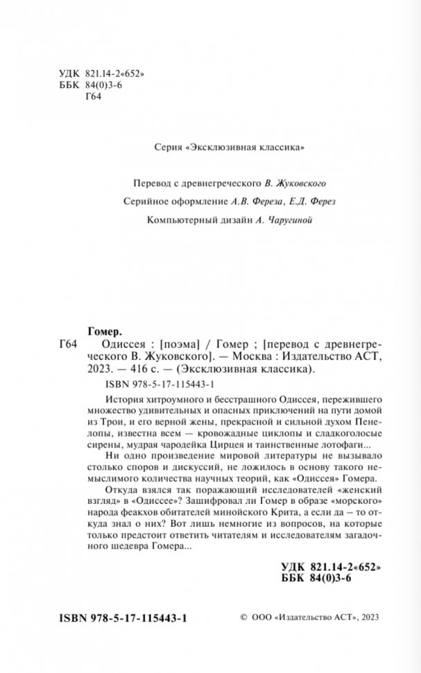 Книга: Одиссея (Гомер , Жуковский Василий Андреевич (переводчик)); Neoclassic, 2022