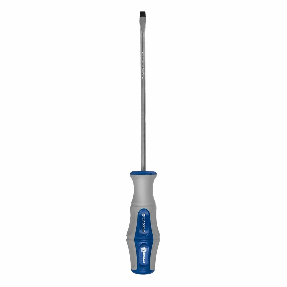 Отвёртка Ultra Grip SL 5 х 150 мм CR-V КОБАЛЬТ используется в работах с резьбовыми крепежом. Инструмент оснащен магнитным наконечником плоского профиля. Стержень выполнен из качественной хром-ванадиевой стали, благодаря чему увеличивается прочность отвертки. Двухкомпонентная рукоятка спроектирована специально для крепкого захвата и комфортного расположения в ладони во время эксплуатации.
