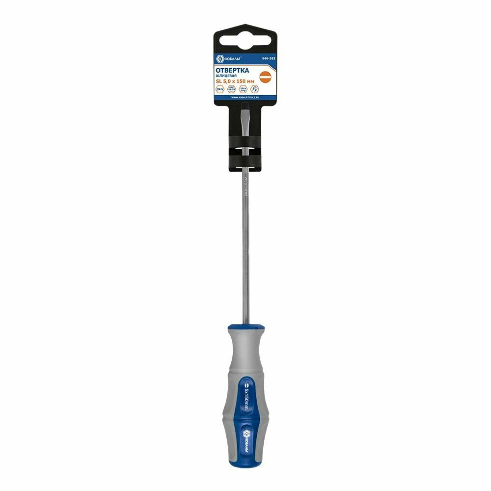| Прочие особенности и свойства | Отвёртка Ultra Grip SL 5 х 150 мм CR-V КОБАЛЬТ 646-263 используется в работах с резьбовыми крепежом. Инструмент оснащен магнитным наконечником плоского профиля. Стержень выполнен из качественной хром-ванадиевой стали, благодаря чему увеличивается прочность отвертки. Двухкомпонентная рукоятка спроектирована специально для крепкого захвата и комфортного расположения в ладони во время эксплуатации. |