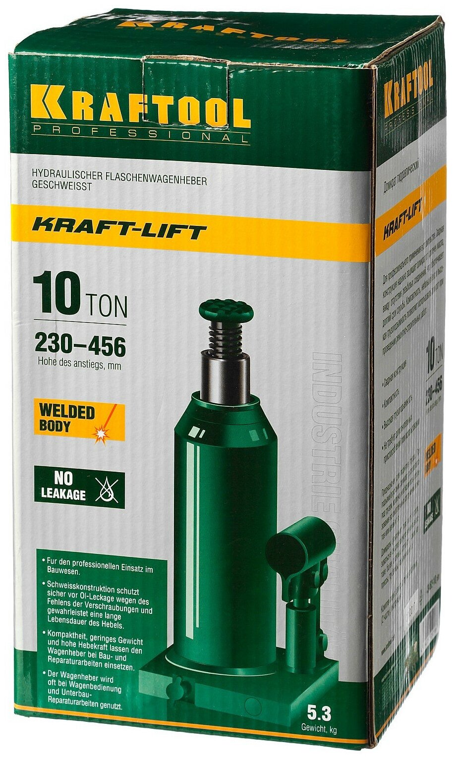| Доп. наименование Водопад | Домкрат Kraftool KRAFT-LIFT 43462-10 гидравлический бутылочный 10т 230-460мм |