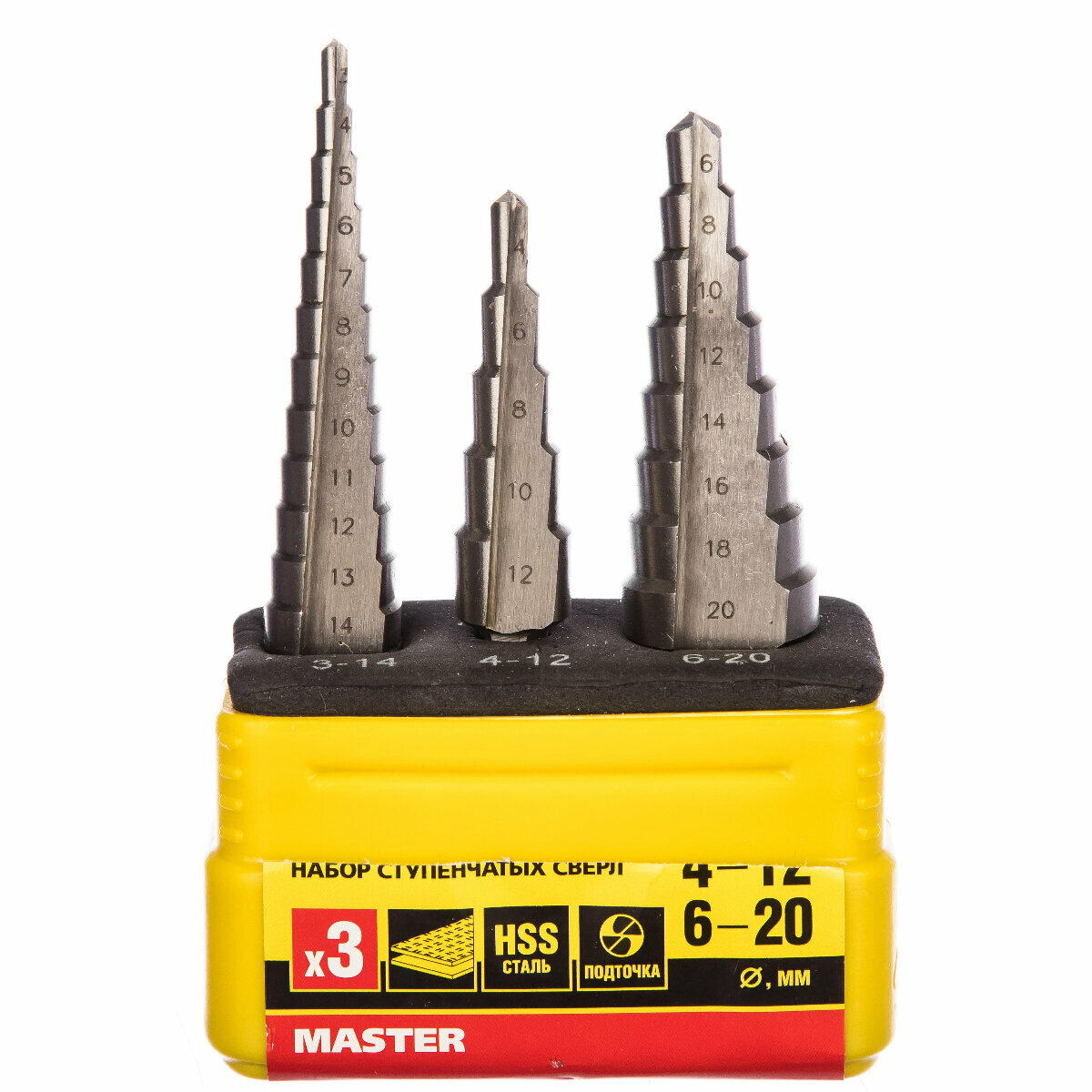 | Размер сверл в наборе, мм | 3-14 мм, 6-20 мм, 4-12 мм |