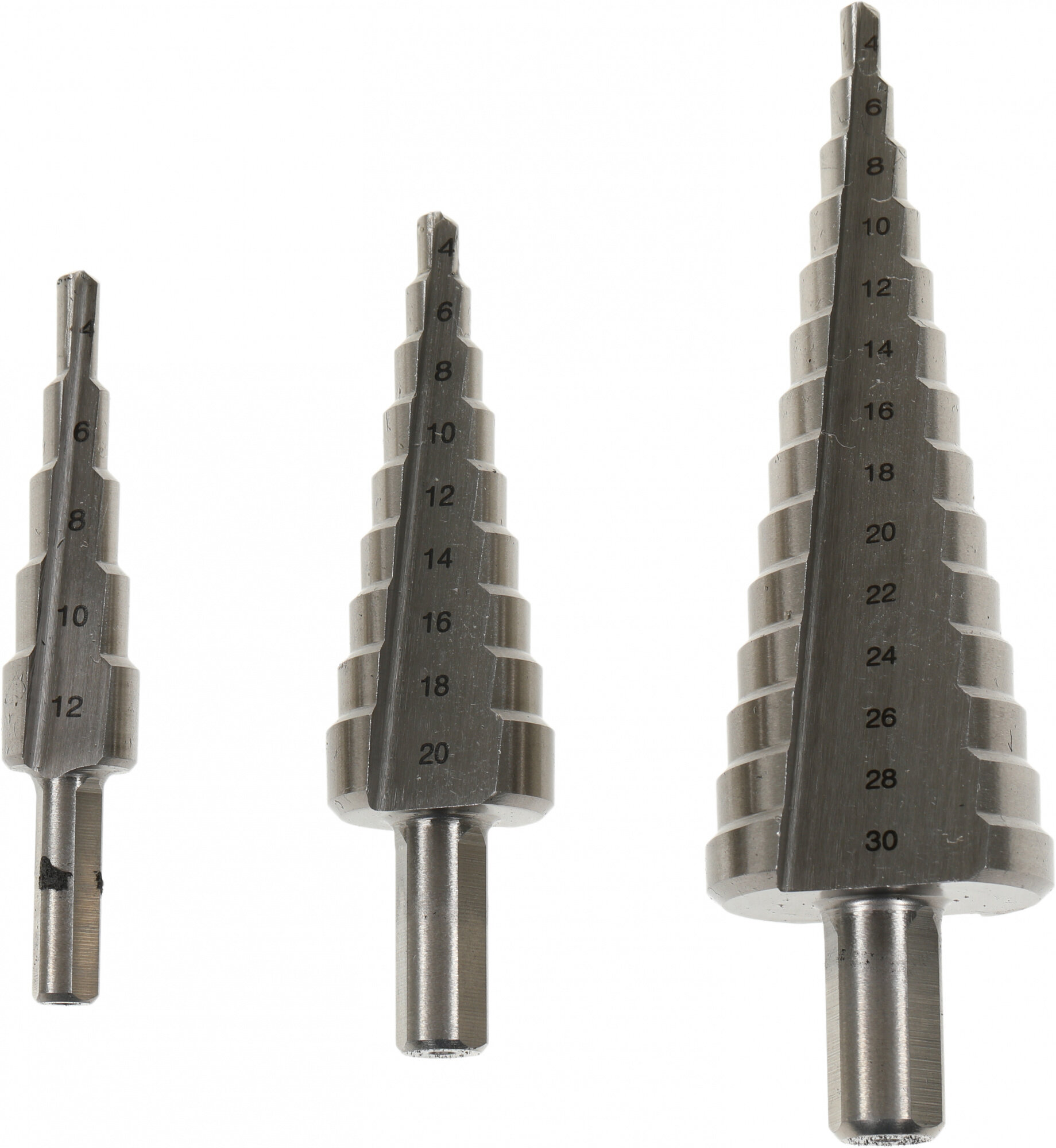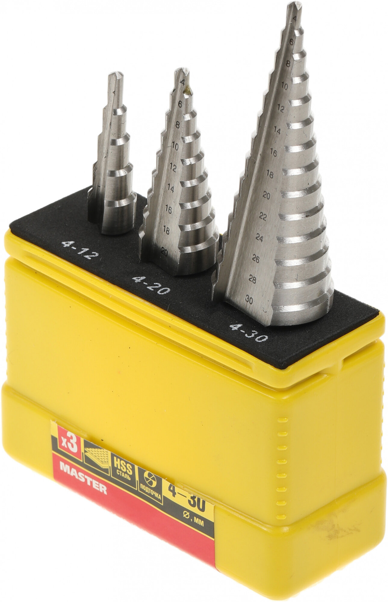 | Размер сверл в наборе, мм | 4-12 мм, 4-20 мм, 4-30 мм |