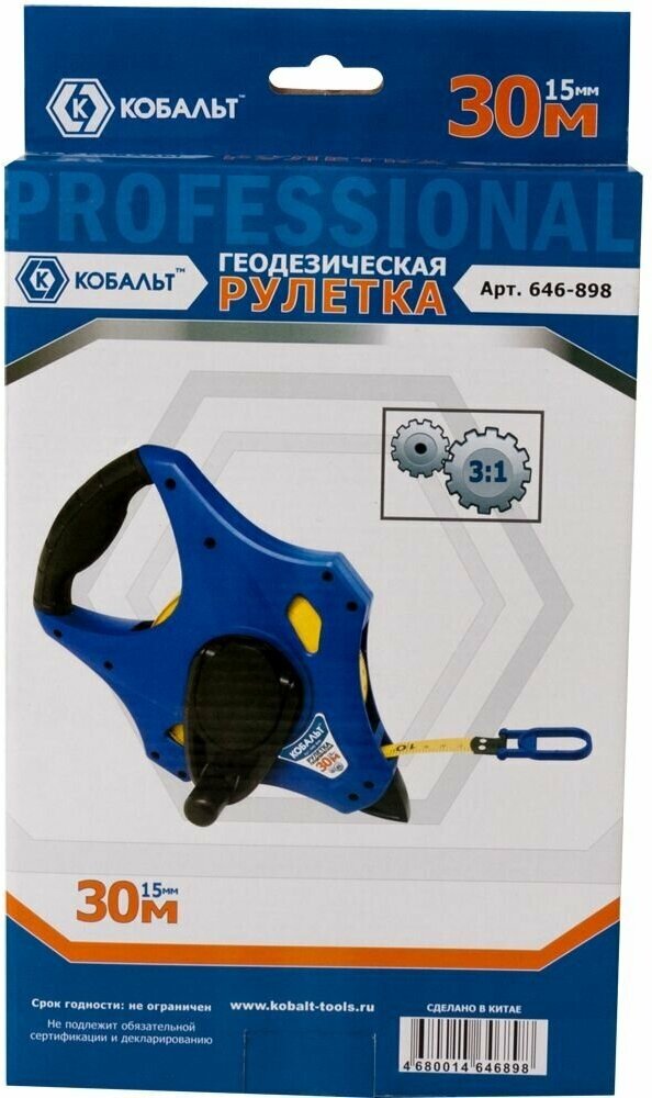 Рулетка геодезическая (30 м x 15 мм) КОБАЛЬТ является неотъемлемой частью в сфере ремонтных и строительных работ.Преимущества Фибергласовая лента с нейлоновым покрытием выдерживает усилия до 75 кг, яркая и читаемая линейка помогает быстро и точно сделать замеры Корпус выполнен открытым и ударопрочным, за счет чего рулетка становится легче, комфортнее в применении и, при этом, остается практичной и надежной Крепкая рукоятка имеет удобную форму Для моментальной работы в изделии предусмотрена функция ускоренной смотки