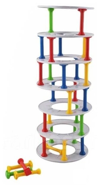 Постройте башню из 6 этажей колонн. По очереди бросайте кубик и убирайте по одной колонне соответствующего цвета с любого яруса Этажерки, ставьте ее на верхний уровень. Во время вашего хода башня разрушилась - вы проиграли, а ваши соперники получат по одному очку. Играйте до тех пор, пока кто-то не наберет 5 очков.