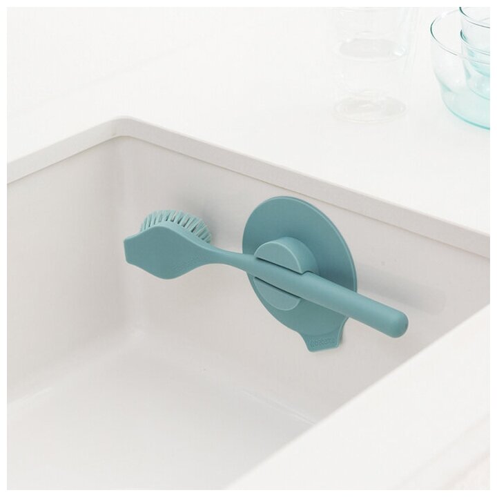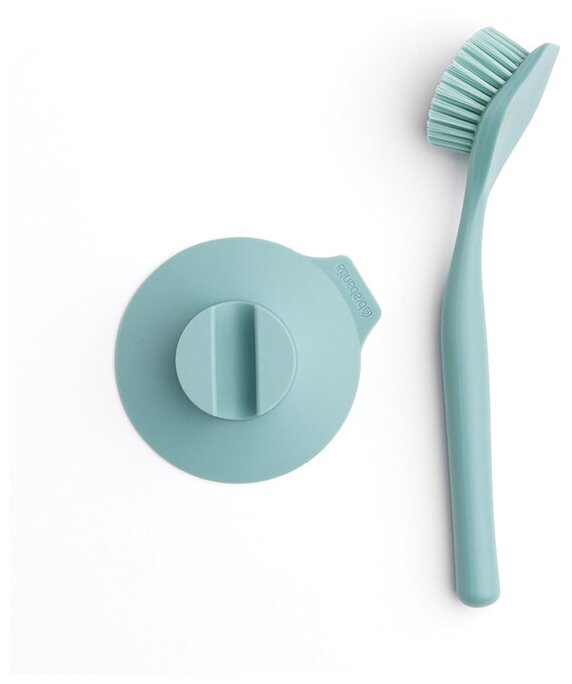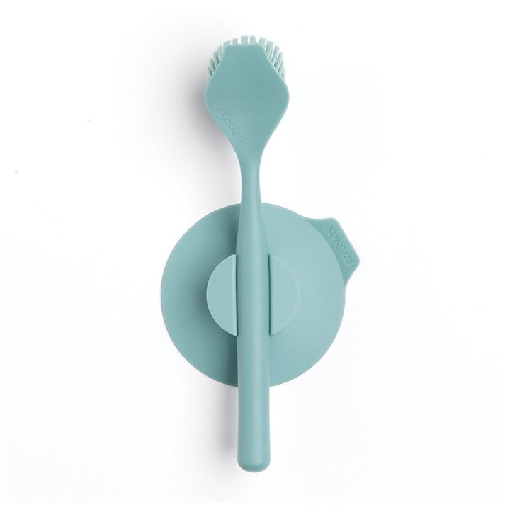 Со щёткой Brabantia мытьё посуды будет отнимать у вас значительно меньше времени и сил. Её густые упругие щетинки аккуратно устранят загрязнения и не оставят царапин и потёртостей на вашей кухонной утвари. продуманные детали Не было времени сразу же вымыть посуду? Просто переверните щётку – на её обратной стороне находится скребок, который поможет вам удалить присохшие или пригоревшие частички пищи. Эргономичная форма повышает эффективность приспособления. Изогнутая рукоятка надёжно лежит в ладони и не скользит даже после намокания. практичное решение В комплект поставки входит прочный держатель на присоске. Его будет удобно закрепить на кухонном фартуке рядом с мойкой или непосредственно на стенке раковины, чтобы щётка всегда была под рукой в нужный момент и не затерялась. Аксессуар сделан из прочного пластика. Очищать его можно как вручную, так и в посудомоечной машине.