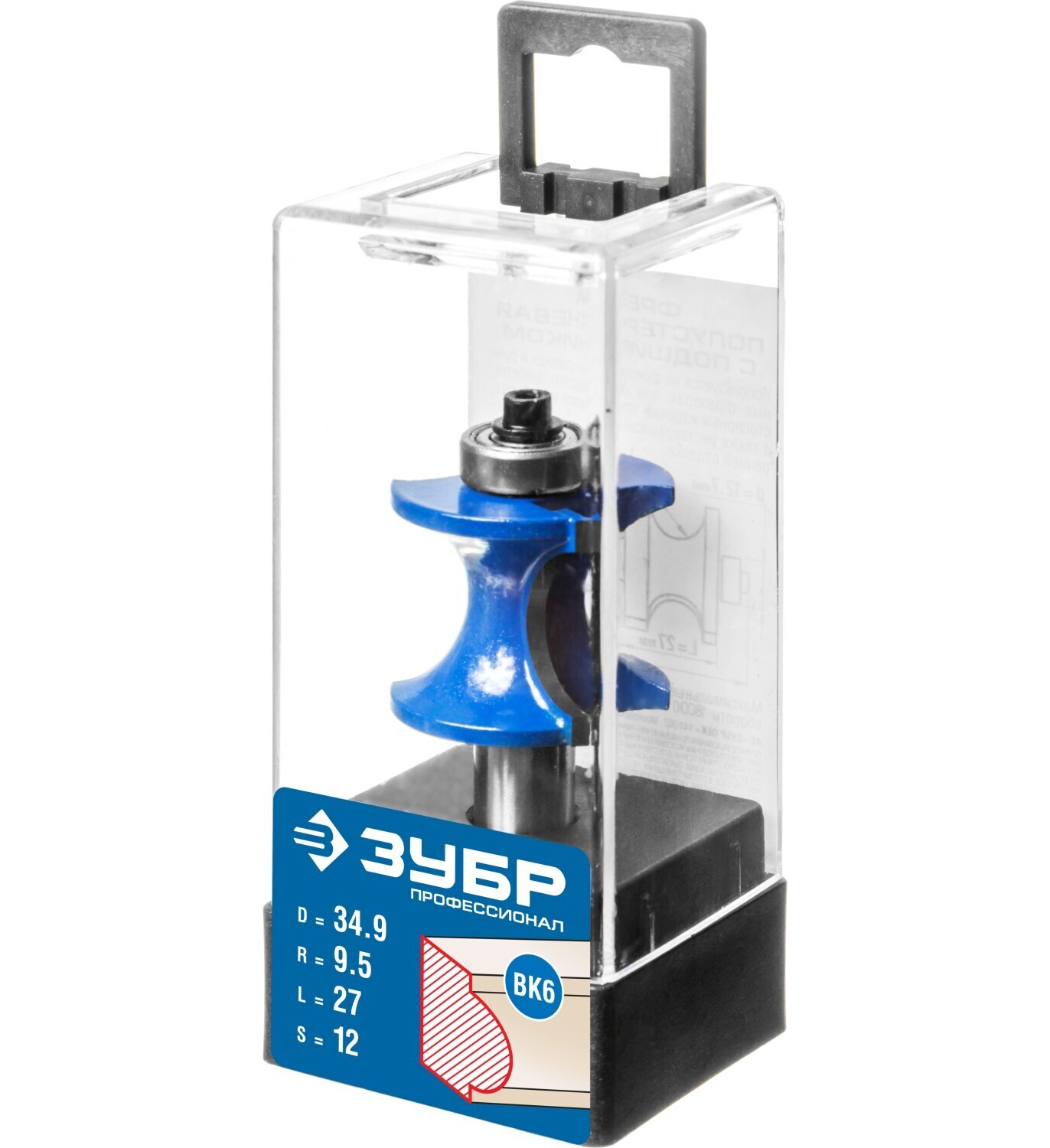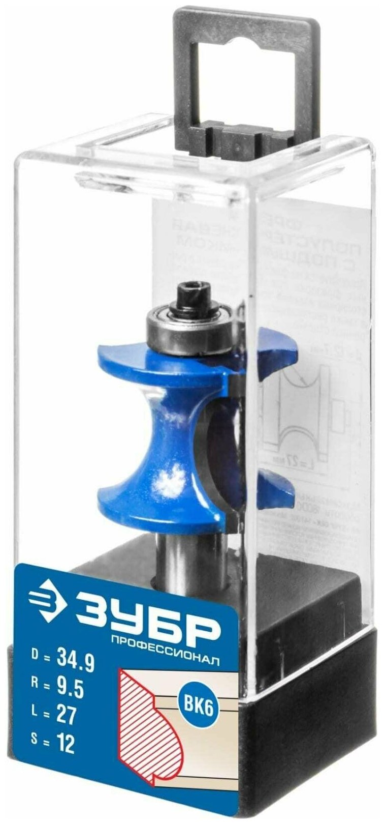 Фреза полустержневая с подшипником, D= 34,9мм, рабочая длина-27мм, радиус-9,5мм, хв.-12мм, d-12,7мм, ЗУБР Профессионал