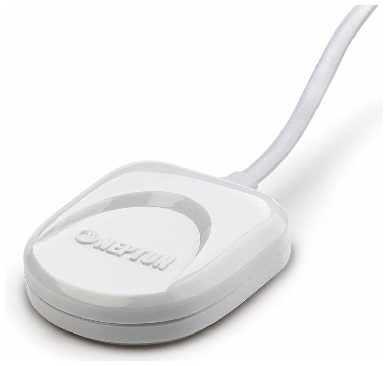 Датчик контроля протечки воды Neptun предназначен для обнаружения протечки воды и передачи сигнала на модули управления Neptun. Устройство размещается в местах с наибольшей вероятностью протечки: санузел, ванная комната и т. д. Датчик срабатывает при попадании влаги на контактные пластины, при этом пластины замыкаются, и система защиты Нептун закрывает шаровые краны. Контактные пластины безопасны при случайном прикосновении, так как подключаются к безопасному источнику питания. Длина установочного провода - 2 м.