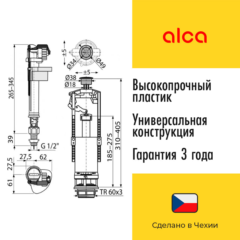 Сливная наливная арматура для бачка Alcadrain Alca plast Sa2000sk 1/2
