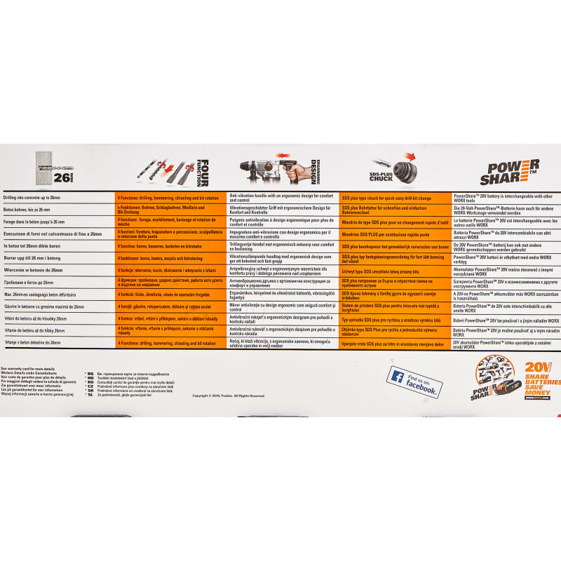WORX WX392 БЕСПРОВОДНОЙ ПЕРФОРАТОР 20V - русский - worx.com