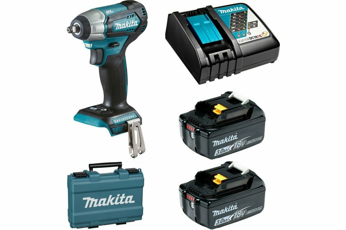 Аккумуляторный ударный гайковерт Makita укомплектован двумя Li-Ion аккумуляторными батареями емкостью 3.0 Ач и зарядным устройством для них. Все это компактно размещается в прилагаемом кейсе.