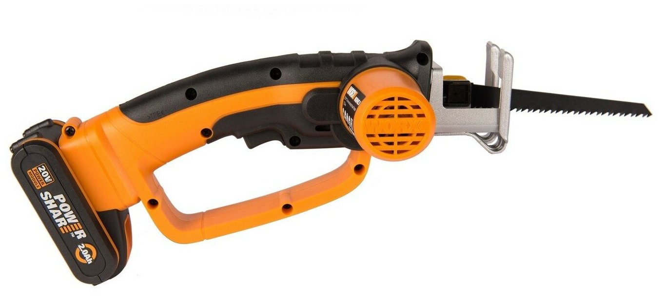 Аккумуляторная пила 20V, 16 мм, WORX , работающая от аккумулятора 20В., Tool-less blade ™ - Система быстрой замены лезвия без инструмента., PowerShare® system - Система взаимодействия батареи с другими устройствами 20V MAX WORX.