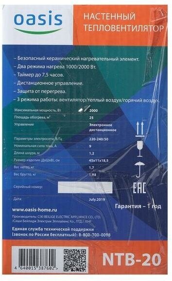 - Обзор тепловентилятор OASIS NTB-20(B),2000Вт.