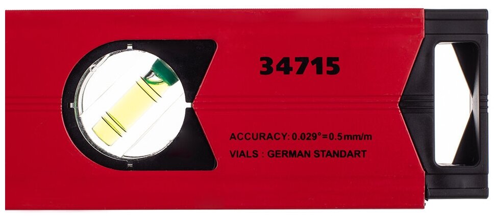 | Описание | Уровень алюминиевый магнитный, 1500 мм, фрезерованный, 3 глазка (1 зеркальный), усиленный// MATRIX (34715) Усиленный алюминиевый профиль с ребрами жесткости. Фрезерованная рабочая поверхность обеспечивает дополнительную точность измерения. В подошву уровня встроен магнит для фиксации на металлических поверхностях. Имеет три измерительных глазка для проверки отклонений по горизонтали, вертикали и под углом 45 градусов. Точность измерений – 0,5 мм м. В верхней части имеется окошко с зеркальным отражателем, позволяющее без ошибок снимать показания во фронтальной и поперечной плоскостях. |