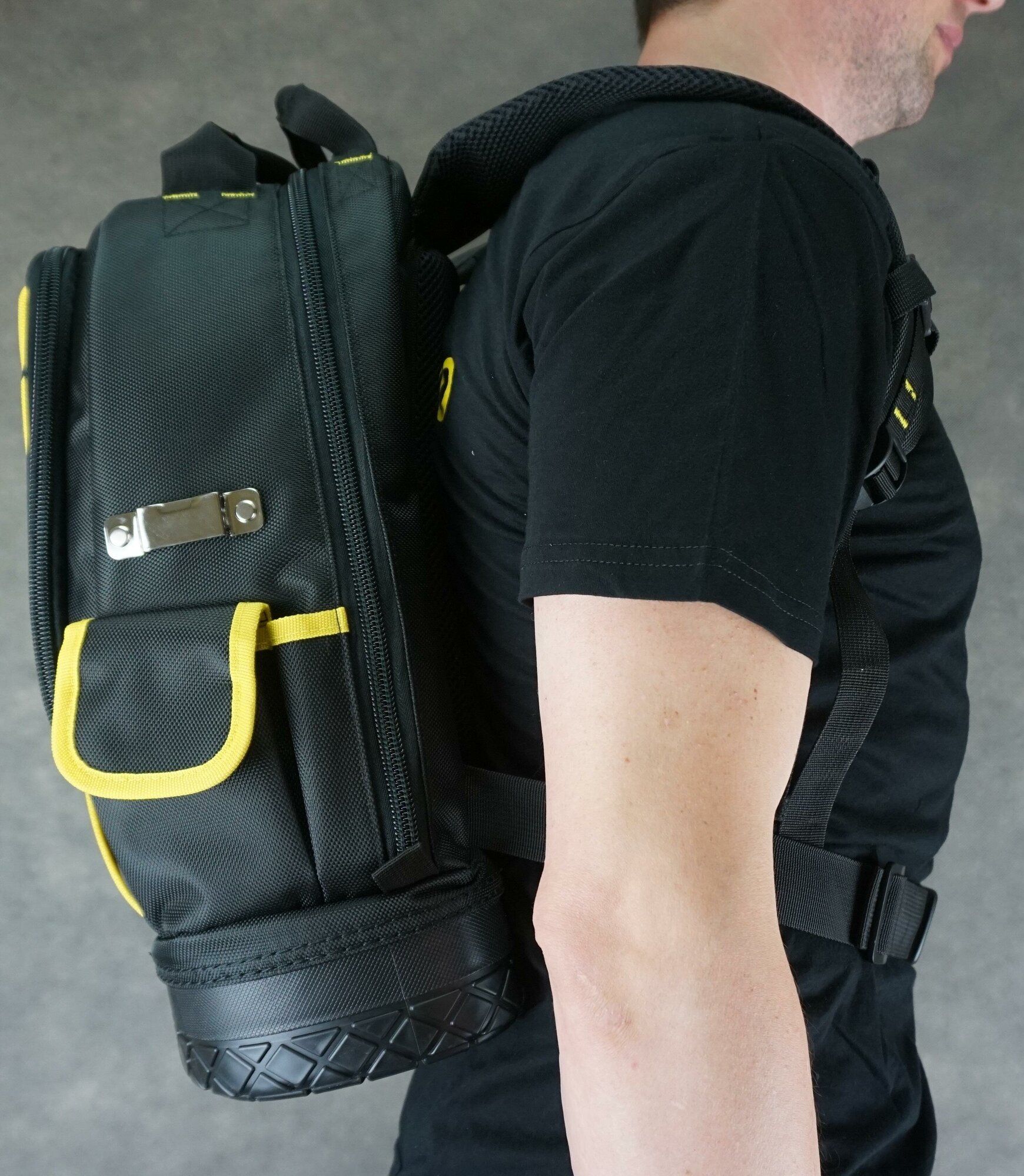 Рюкзак Боген имеет 57 карманов, крепление для рулетки и поясной ремень.